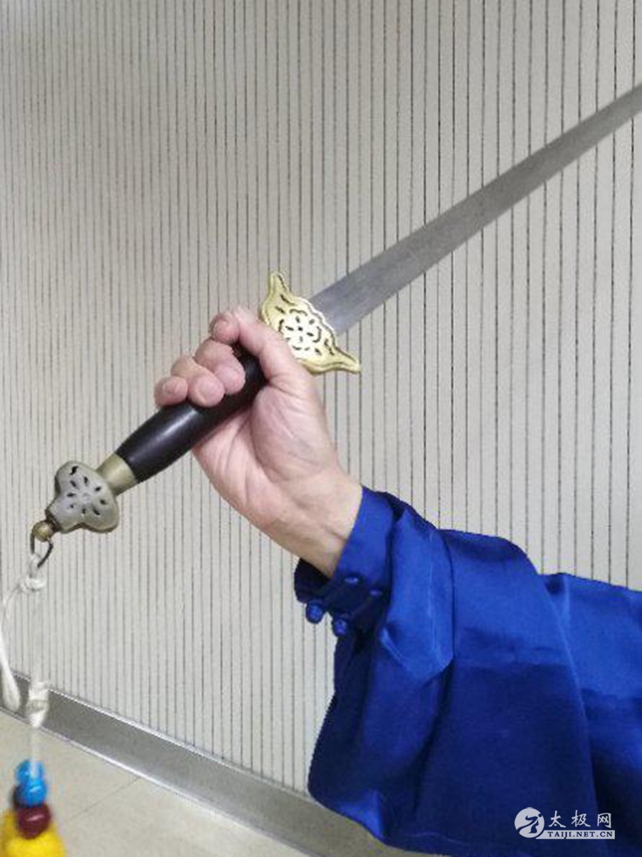 学剑正确的把法俗称握剑能表现剑法运行路线清楚,力点准确剑势到位,否则剑在手中生硬不灵活运转,致使剑法表现不清,力点不準确更达不到刚柔舒展大方身剑合一,和神剑合一的要求。 剑技高者正确的表现出把法,牢又活,随剑法的变化,腕指关节灵活多变,掌心松空,掌松,虎口各部位着力轻重各不相同,故称为活把剑的运用。 剑术的用"把",是指剑"把法,把向,把位"把法与剑法运用,持剑把的把性。此可谓之用剑或者是持剑的把。以下就用剑的把法的体会分别说明。 一、持剑的把法。 剑术持剑的把法,是指顺向或逆向持剑的方法。这是持剑握柄后,由剑身所在的方向决定的。其把法有顺把剑和逆把剑,俗称正手剑和反手剑,或是正把剑和反把剑。把法的不同,主要区别在持剑手之虎口,所在剑柄上的朝向是剑尖还是剑首。虎口朝向剑尖者为顺把剑,虎口朝向剑首者为逆把剑。 二、持剑的把向。 在剑术中,持剑的把向是决定剑器在空间的纵、横、垂、竖的方向与上、中、下的位置。其实以持剑者的身体的前后左右上下的位置及所持剑的纵横垂直竖方向来确是剑器的方位的。在剑术中,纵向剑法之用须用纵向剑,横向剑法之用须用横向剑,垂竖剑法各有其道,纵横剑法各有区别,其用法决不能相互混洧,又不能相互代替。故而持剑的把向,虽然只是决定了剑尖在剑术中的朝向和位置,但却起着十分重要作用。持剑的把向有横剑,纵剑,垂剑和竖剑四种。 横剑:又称为横向剑。剑尖朝向身体左侧或右侧,剑体与身体正面平行剑法。横剑有内横剑和外横剑之分,上横剑与下横剑之别。 ①、内横剑:右手持剑剑尖朝左,左手持剑尖朝右的横剑为内横剑。 ②、外横剑:右手持创,尖朝右,左手持剑,尖朝左的横剑称为外横剑。 ③、上横剑:剑尖高于剑柄,剑身非竖立的横剑为上横剑。 ④、下横剑:剑尖低于剑柄,剑身非垂立的横剑为下横创。 2、纵剑:又称为纵向剑。剑尖朝前或朝后,剑体与身体正面垂直的剑位。纵剑又有前纵剑和后纵剑之分,前纵剑又有手纵剑,上纵与下纵剑之别。 ①、前纵剑:剑尖朝前的纵剑。 ②、后纵剑:剑尖朝后的纵剑。 ③、平纵剑:剑尖与剑柄再同一水平面上纵剑。 ④、上纵剑:剑尖高于剑柄,剑身非竖向的纵剑为上纵剑。 ⑤、下纵剑:剑尖低于剑柄,剑身非垂向的纵剑为下纵剑。 3、持剑把法与剑法的运用 ①、持剑的把法是多种。如反把握剑一一剑身贴于左前臂后左手食指贴压于剑柄,指尖指向剑首其余四指握与护手,多用于剑术的起势或收势。见图 ②、满把剑:手握剑柄,腕关节正直,使虎口正对剑格,顺向四指,并其握紧,横向拇指,屈压于食指的第二节指上。多用于劈剑、崩剑、托剑、和推剑等见图视。 ③、螺把剑:以食指第二节指靠近剑格,顺向四指,递错并拢,形似螺壳,横向拇指,靠近食指的第三指节。持剑时,腕关节要向下微屈。用于剌扫剑等。见图 ④、刁把剑:以虎口的挟持力,将剑柄刁牢,拇指、食指和中指自然伸直,须附于剑把上,其余二指,基本离开剑柄。用于带剑、抽剑、挂剑、云剑等见图视。 ⑤、压把剑:使拇指与食指掐握住剑柄,虎口贴附于剑格之上,并以第一节无名指和小指附压在剑柄后端,不要使剑尖向下坠沉,形成以剑格为支点的杠杆状的持剑把法。如吴氏剑的分剑七星第三动丁步压剑,五动们弓步左压剑和逆鳞刺左下压剑见图视。 ⑥、按把剑:螺把剑握剑后,拇指附按在立面剑柄上,以增强小指一侧剑刃的力量。如吴氏剑分剑七星中第六动叉步下按剑、武当29式盖步按剑等。见图 ⑦、钳把剑:以拇指、食指及其这二指间虎口的挟持力,将剑柄钳住,其余三指则自然附于剑辆之上,常用于绞剑、削剑、击剑如42式太极剑的弓步崩剑和進步绞剑见图视。 ⑧、反把剑:手臂内旋,手心向外,拇指支于剑柄下方,向上用力,中指、无名指、小指向下勾压多用于撩剑、探刺剑等,如42式太极剑的36式弓步反刺即是此反把握剑。见反把剑图视。 持剑把法与剑法的运用 ①、持剑的把法是多种。如反把握剑一一剑身贴于左前臂后左手食指贴压于剑柄,指尖指向剑首其余四指握与护手,多用于剑术的起势或收势。见图 ②、满把剑:手握剑柄,腕关节正直,使虎口正对剑格,顺向四指,并其握紧,横向拇指,屈压于食指的第二节指上。多用于劈剑、崩剑、托剑、和推剑等见图视。 ③、螺把剑:以食指第二节指靠近剑格,顺向四指,递错并拢,形似螺壳,横向拇指,靠近食指的第三指节。持剑时,腕关节要向下微屈。用于剌扫剑等。见图 ④、刁把剑:以虎口的挟持力,将剑柄刁牢,拇指、食指和中指自然伸直,须附于剑把上,其余二指,基本离开剑柄。用于带剑、抽剑、挂剑、云剑等见图视。 ⑤、压把剑:使拇指与食指掐握住剑柄,虎口贴附于剑格之上,并以第一节无名指和小指附压在剑柄后端,不要使剑尖向下坠沉,形成以剑格为支点的杠杆状的持剑把法。如吴氏剑的分剑七星第三动丁步压剑,五动们弓步左压剑和逆鳞刺左下压剑见图视。 ⑥、按把剑:螺把剑握剑后,拇指附按在立面剑柄上,以增强小指一侧剑刃的力量。如吴氏剑分剑七星中第六动叉步下按剑、武当29式盖步按剑等。见图 ⑦、钳把剑:以拇指、食指及其这二指间虎口的挟持力,将剑柄钳住,其余三指则自然附于剑辆之上,常用于绞剑、削剑、击剑如42式太极剑的弓步崩剑和進步绞剑见图视。 ⑧、反把剑:手臂内旋,手心