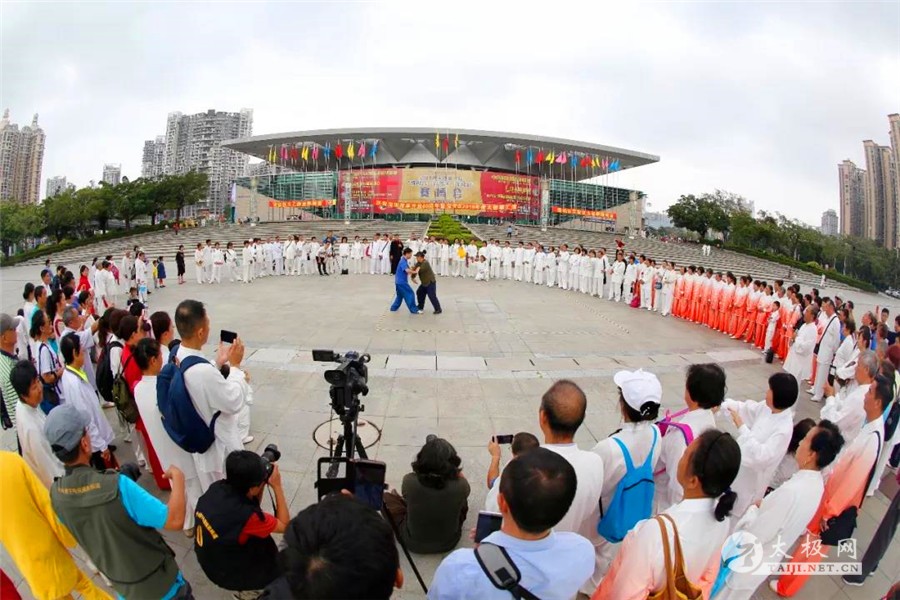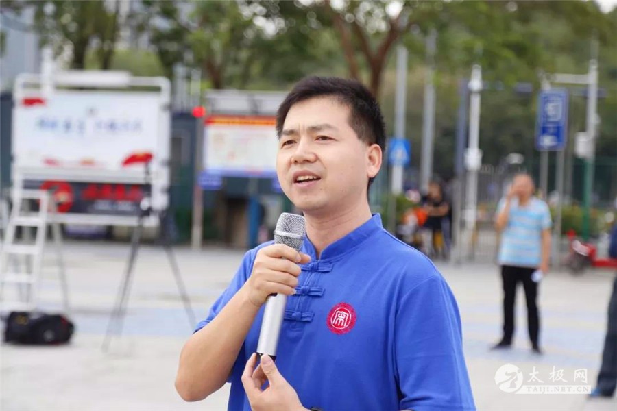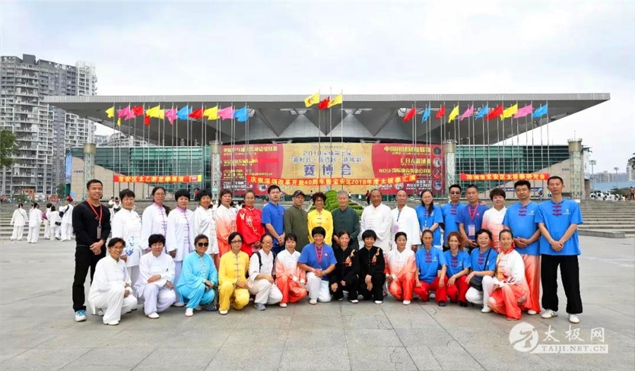 为庆祝深圳改革开放40周年暨深圳市宝安区太极拳研究会成立一周年,宝安区太极拳研究会于2018年11月10日在宝安体育馆南门广场举行了隆重的太极拳汇演活动。此次汇演共有28支队伍700余人参加,其中宝安区22个辅导站,福田、罗湖、龙华、南山、龙岗等区的6支队伍应邀参加表演。精彩的拳艺汇演传承了太极文化的精髓,展现了新时代太极人的风采。 出席此次活动的嘉宾有: 宝安区文体旅游局副局长卢清 宝安区文体旅游局体育科科长刘永祥 宝安区老龄办陈冰 深圳市太极拳研究会党支部书记、副会长杨广德 深圳市太极拳研究会副会长、深圳市社会体育指导员协会会长助理刘筠 中国武术七段、大宋体育产业股份有限公司董事局主席、杨氏太极第五代传人、宝安区太极拳研究会技术总顾问宋斌 天年之家柏慧 中国武术六段、中国武术段位制考评员、指导员、宝安区太乙游龙拳主要传播者江慧莲 杨氏太极拳103式深圳主要传播者魏国梁、石秋莲、肖佑光 中国武术六段、国家一级社会体育指导员、中国武术段位指导员、考评员、中国武术二级裁判员魏兆兰 中国武术六段、深圳市龙华区福城湘燕太极拳协会会长刘彩艳 武当赵堡太极拳第十四代传人、罗湖区品之唐太极拳协会会长唐仲春 陈家沟太极拳第十三代传人、深圳市太极拳研究会常务理事兼坂田太极辅导站站长龙秀文 中国武术六段、陈氏太极拳第十二代传人付碧云 陈式小架太极拳第11代传人贾洪新 宝安区太极拳研究会会长谢勤先生致欢迎辞,表示将继续开展各项培训和活动,不断提高会员的技术水平,让每一位参与者都享受太极拳带来的快乐与健康。