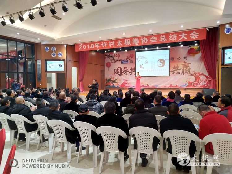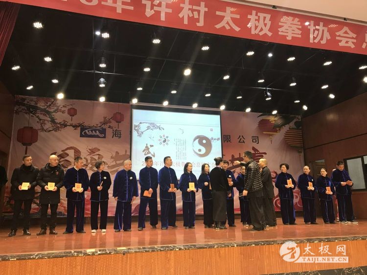 | 许村太极拳协会年度总结大会于2018年12月31日在许村镇永福村文化礼堂隆重召开。 大会第一个议程是结业考核。考核分陈式太极拳养生十六式和老架一路两种,主考人员为许卫明、马智萍、沈印年、周志强、张忠良等人。 老架一路参考学员 陈式太极拳养生十六式参考学员 考核结束后,颁发结业证书 大会第二个议程为颁奖环节。 韩志明、杨剑英、顾益球获年度优秀教练。 联合二小分会、民主教学点获先进教学点称号 徐芬等八人获太极网团体一等奖 许卫明会长致辞 精彩的表演 |