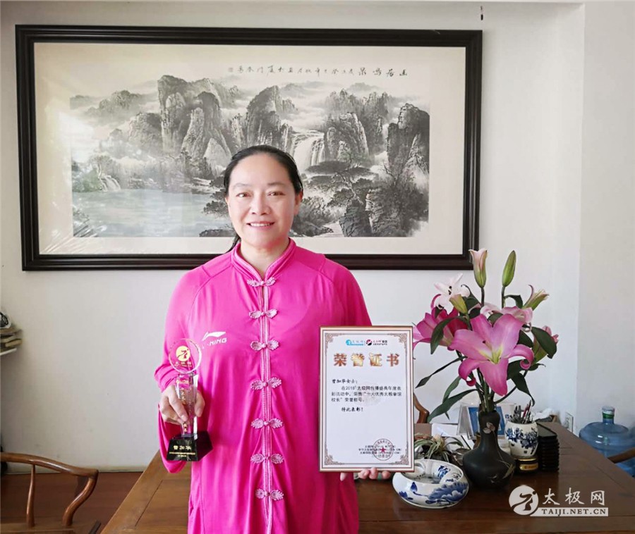 合影 曾加华老师在采访的最后表示:荣获2018年太极网“十大优秀馆校长”既是荣誉更是责任担当,今后将继续致力于研究、继承、弘扬太极文化,普及、推广太极运动,传承中华国粹,服务社会健康发展。 本站责编:太极网萌 |