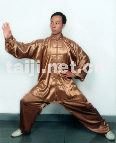 田培亮拳姿 田培亮,1975年出生于武术之乡温县。自幼酷爱太极拳。曾先后受太极名师郑国瑞、崔广博、张东武、陈有刚等引蒙指点。自1991年起跟随陈小旺大师之子陈军、陈迎军系统地学练陈式太极拳术至今。由于他痴迷于拳术,承蒙陈军、陈迎军联合向其父亲举荐,才有幸得陈氏太极拳正宗传人、国际太极拳大师陈小旺老师亲手传授拳、枪术、推手及擒拿等技法,受益颇丰。他在学练过程中,参加各级比赛,三次荣获陈式太极拳、剑一等奖,一次第三名,三次夺得太极推手冠军,又在2002年国际太极拳年会上一举夺得成年组太极推手金牌。