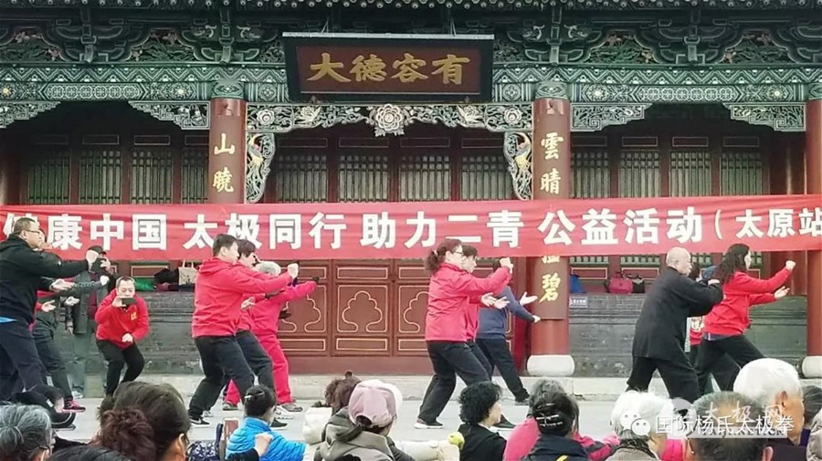 鸟语花香景色宜人 体育事业蓬勃发展 藏经楼前传播健康 杨氏太极光彩四射 “健康中国·太极同行”助力二青公益活动之我们在行动。 3月31日早晨,美丽的龙城迎泽公园,风和日丽、春色怡人,适逢山西省杨氏太极拳研究会健康公益讲座日,由杨氏太极拳振铎系掌门人杨军老师为健身爱好者传播太极奥妙。 清晨,由杨军老师带领来自各城区、各地市的拳友们一起习练传统杨氏太极拳103式。 杨军老师怀揣着家国情怀和报效社会的一颗赤子之心,始终不忘传承者的责任,把杨振铎宗师倡导的“健康中国,太极同行”付诸在实际行动中,在切实为世人送去健康的同时,也为传统杨氏太极拳这一民族文化瑰宝在新时期、新形势下对社会的影响力,增添了新的内涵。 拳友们正在习练杨军老师创编杨氏太极精要套路。该套路因其短小精干,时间长短适宜,内容丰富,将作为今后杨氏太极拳比赛、 表演、段位星级考核的首选。 杨军老师的平易近人,风趣幽默,生动活泼的授课风格;通俗易懂,深入浅出,互动演示的授课效果;科学性,理论性,合理性高度融融合,深深吸引了众多拳友,大家都觉得杨军老师的讲座太精彩了,获益匪浅、意犹未尽······ 二青圣火点燃中华文明史, 增强全民意识燃健康梦想; 太极普惠公益扬体育精神, 助力二青盛会太极人践行。 太原电视台在活动现场采访杨军老师,对杨军老师太极拳公益巡讲做专题报道。 杨军老师传播国粹太极拳、为世界大众健康弘扬传统文化的脚步不会停歇,一直在路上。 山西省杨氏太极拳研究会集体留念 责编:太极网豪杰 |