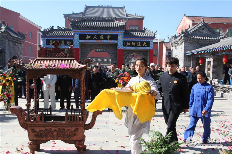 (太极网 讯)4月14日,一代宗师陈庆州弟子及再传弟子走进温县庆州武院寻根拜祖,感念先祖创拳之辛劳,缅怀先师传拳之恩德。 来自全国各地的“尊古太极”门下精英弟子聚首温县庆州武院,于陈庆州大师陵园举行隆重的祭祖仪式,深切缅怀一代太极拳大师陈庆州。 祭祖仪式由温县文化馆馆长、县非物质文化遗产保护中心主任闫忙种主持,现场凝重肃穆。鸣礼炮后,各代表队依次敬献花蓝,摆放祭品,行献礼;陈庆州大师长子陈有则老师代表众弟子净手上香;陈庆州大师四子陈有华敬酒;陈庆州大师入门弟子米广盛拜读祭文,众人行施拜礼,祭奠先辈风华,缅怀先辈恩德。 陈庆州是当代陈氏太极拳代表人物之一,生前是河南省非物质文化遗产项目陈式太极拳项目代表性传承人,享誉世界的太极大家。他的一生,是传奇的一生,奋斗的一生,辉煌的一生……陈老一生为弘扬太极拳,造福全人类,做出了不可磨灭的贡献。先生的功德,必将永载史册,流芳千古。 “追本溯源一脉相承,陈氏太极尊古体系。”此次祭祖活动意义非凡,对尊古体系传人们来讲,这是一次对太极拳传承和太极拳文化底蕴深层次理解的绝佳机会,能够激发他们心中对太极拳文化和传统礼仪的敬畏之心,更增强自己传承发展的责任与未来任重道远的担当。愿尊古体系传人承先师之德,遵习拳之路,沉潜内修,砥砺前行,在太极拳的传播路上永远不停下脚步,弘扬太极文化更是要时刻牢记在心! 祭祖仪式结束后,中国武术协会专业二级会员单位(温县庆州武院)揭牌仪式隆重举行。温县太极拳武术文化管理中心负责人任海林,温县文化馆馆长、县非物质文化遗产保护中心主任闫忙种,太极名家陈有则、陈有华出席揭牌仪式。 任海林致辞 温县太极拳武术文化管理中心负责人任海林在讲话中表示:希望温县庆州武院把成为中国武术协会二级专业性单位会员作为新起点,充分用好权利,努力履行应尽的义务,充分发挥师资实力和地理优势,为武术事业的发展作出更多的成绩、更多的贡献。 |