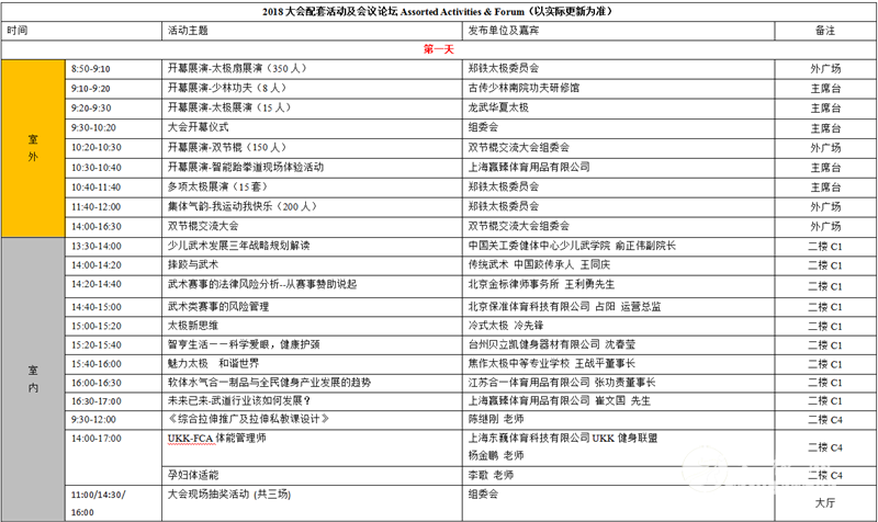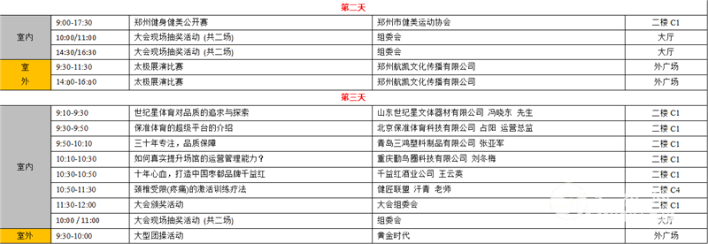 政策指导单位Special supporters: 国家体育总局武术运动管理中心、河南省武术运动管理中心 主办单位Organizers: 河南省武术协会、广州西码展览股份有限公司 协办单位Co-organizers: 全国体育运动学校联合会、中国国际综合格斗联合会、武术产业联盟 、中国国际武道跆拳道联合会 战略合作单位Strategic cooperation partners: 盛世太极、科星太极、大师有空 展会日程安排Exhibition Program: 报到布展:2019年7月10日-11日 展出时间:2019年7月12日-14日 撤展时间:2019年7月14日下午15:00 展会数据Exhibition Data: ◎展出面积15000平方米 ◎展商数量达到350家 ◎专业观众数量达到20000人次 ◎预期达成贸易成交额1.1亿 上届大会配套活动及会议论坛Onsite Events & Forum: 大会亮点和优势Exhibition Highlights: 1. 同期举办:武术交流峰会+武术人才交流大会 +健身大会+刀剑艺术收藏品订货会; 2. 汇聚会议论坛、展览展示、赛事表演、交流合作、产品销售、代理加盟、市场开发、宣传推广、 打造品牌知名度、树立企业形象、提高企业综合实力的一个国际性的大型商业活动; 3. 全球功夫界的交流合作盛会,汇聚了武术人才、赛事俱乐部、少林、太极、体院、武校、军警安保、格斗、散打、搏击、跆拳道、拳击、泰拳、摔跤、柔道、空手道、击剑等装备生产厂家、人才交流、科技服务等行业上下游全产业链的一个完美平台; 4. 特邀行业官方机构、社会组织、武术大师、搏击高手、跆拳道高手、健身教练出席并参与大会; 5. 传统武术与现代搏击的完美结合; 6. 中国河南-世界武术发源地,远播海内外,汇聚着世界武术大师,卧虎藏龙;具有悠久的历史和现代最优越的资源;中国最大最繁华、人口最多最集中的城市之一;消费购买力最大的城市;位居中原物流中心,周边直接辐射全国;位居“一带一路”中欧班列始发站。 展览组成Exhibition Category: 1. 展区划分:论坛交流区、大赛区、现场技能展示区、人才交流区、配套装备展区、书画展区、媒体服务区; 2. 配套活动:开幕仪式、论坛交流、人才交流会、新产品演示推广发布、节目表演、实战演练、大会评奖活动; 3. 展览范围: 传统武术:少林、太极、峨眉、武当、南拳等各武术门派,赛事俱乐部,武术器械,武术装备,武术服装,太极用品,工艺品特产,道教养生、佛学文化等; 现代搏击、综合格斗:散打、跆拳道、空手道、摔跤、拳击、泰拳、柔道、击剑等现代搏击、综合格斗用品(擂台、八角笼、拳套、服装、靶类、沙袋、胶人、训练比赛等专用产品),赛事表演,健身设备(跑步机、综合训练器等)等; 赛事:传统武术赛事、现代格斗搏击赛事、跆拳道赛事、拳击赛事等; 武协、体育院校及培训机构:各省市武协、全国武术之乡展示区、体育院校、武术院校、武馆、道馆、俱乐部、培训机构等; 军警器材:技能、体能、模拟器材、擒拿格斗、伞降、射击训练、水下装备等配套器材,保镖培训机构,拓展训练,极限运动,军事化院校等; 武医养生:武医文化、武医技能、中医药健康养生产品、艾灸用品、传统滋补养生产品、益生菌及酵素产品、功能饮料; 智慧体育:武术搏击电子游戏、武术动作电影、智能穿戴装备、拍摄装置、AR/VR技术装备; 其它:街舞酷跑、户外运动、冰雪运动、休闲运动、广场舞蹈、综合体育、体育产业配套技术装备、社会体育、社会组织、投资及保险机构等。 参展收费Exhibition Fee: 1. 标准展位:国内7800元/个、国外2000美元/个 (3mx3m三面或两面展板、一张洽谈桌、两把洽谈椅、普通照明、一个220V/5A电源插座、地毯、楣板名); 2. 光地展位:国内780元/㎡、国外200美元/㎡(展位布展施工,费用自理); 3. 广告:会刊封面5万、封底4万元、封二、菲页、封三3万元;内页1万元; 4. 其它:请柬广告5千元/5千张、资料袋广告1万元/2千个; 5. 配套:论坛、旅游、赛事等,详询组委会; 6. 赞助:开幕仪式(冠名)、酒会晚宴(冠名)、礼品赞助、参会证件、参观指南等赞助方案向组委会索取。 市场推广(立体推广模式)Promotion: 1.全方位宣传推广: 互联网媒体(门户网站、微信、微博、QQ、短信)、平面媒介(邀请函、参观请柬、路牌、报纸、杂志、展架等)、 面对面邀请(参加相关会展、赛事、等活动)、视听传媒(电视、广播、直播); 2.重点邀请: 重点邀请业界嘉宾及专业买家(官方、行业团体组织、专业院校),促成展商与买家近距离接触; 3.人才交流:展会同期组织行业内人才交流会,包括优选教师、学生就业、合作招生等,提供面对面的人才交流平台; 4.团体观众:通过多种合作形式,邀请相关联盟、协会、学会、专业院校、企事业团体观众买家参与展会; 5.订货会:大会针对部分特殊装备企业,组委会配合展商推出产品推介、订货、拍卖会,收到理想的效果; 6.延伸影视界:邀请电影、电视传媒行业人员参与展会; 7.军民融合:邀请军队、武警、消防、安保相关单位到场参观体验; 8.资本融资:邀请社会各界投资公司、金融、银行、保险机构参观洽谈; 观众分布Visitor Breakdown: 展馆平面图Hall Plan 展位示例图Exhibitor Diagram 往届回顾Impressions 第一届 第二届 上届展 会数据Exhibition Data: ◎展出面积10000平方米 ◎展商数量达到230家 ◎专业观众数量达到15000人次 ◎达成合作意向220项 组委会Contact: 负责人:李国凤 LiGuofeng 手机:+86 133 8110 0116 电话:86-10-5982 4311 微信号:13381100116 E-Mail :lgf@cimugroup.com 网址:www.zzsport