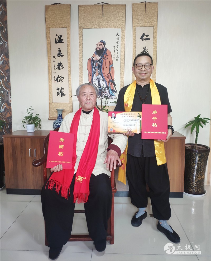 2019年4月21日,陈式太极拳第十一代优秀传承人苏雨洪老师收徒仪式在杭州苏雨洪陈氏太极拳馆举行。本次拜入苏雨洪老师门下的弟子是杭州市太极拳爱好者叶先根,历经长期磨练考核,终获师父认可得以正式拜师,成为太极拳传承人,肩负起传播和推广太极拳的使命。 苏雨洪老师表示,希望新入门弟子能够恪守门规祖训,用心习练太极拳,早日成为合格的太极拳传承人。并表示今后将会继续致力于太极拳的传播和推广,培养出更多更好的太极拳传人,为太极拳事业的发展贡献自己的力量。 太极档案: 苏雨洪老师,系河南开封人,陈式太极拳第十一代传承人,河南温县太极文化传播委员会高级教练,开封市陈式太极拳范鸿信学会副会长兼技术总监,中国武术协会会员,武术七段。 近年来参加全国及世界比赛均获得了让人瞩目的成绩,多次取得开封市武术竞赛太极拳、剑一等奖。并多次荣获河南省武术竞赛太极拳、剑比赛第一名。 2007年7月中国·路桥“正超杯”全国传统武术交流大会(中国·路桥)——荣获男子太极拳金牌,太极剑、太极刀银牌。 2008年10月第三届世界传统武术节(中国·武当)荣获男子太极拳、太极剑银牌。 2009年6月第三届全国旅游名城“体育彩票”杯太极拳邀请赛(中国·承德)荣获男子太极拳、太极剑金牌。 2011年8月中国·四川国际峨眉武术节荣获男子太极剑金牌、太极拳银牌。 2012年11月第五届世界传统武术锦标赛(中国·黄山)荣获男子太极拳、太极剑金牌。 2012年12月,获开封市武术协会成立十周年“特别贡献奖”。 2013年代表河南省老年代表队,参加全国第二届老年运动会(中国·宝鸡),荣获个人太极拳、太极剑金牌。 本站责编:张欢 |