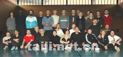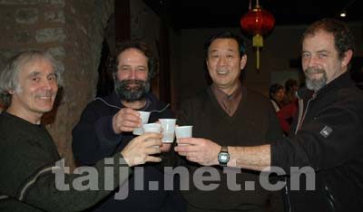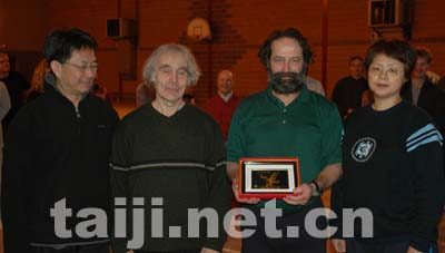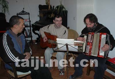 王西安老师春节期间在法国南部孟都班(音)授拳王西安拳法研究会会长阎肃杰向法国分会赠送金箔画王西安拳法研究会法国分会第一届理事会主要成员王西安拳法研究会法国分会秘书长表达对老师的尊敬亲自做的面包练拳之余自娱自乐法国分会菲利浦会长法国的弟子们举办酒会和老师共度中国的传统节日春节和法国米洛斯(音)市政府官员在一起共度节日热情的法国老太太(77岁)和王西安拳法研究会会长阎肃杰女士庆祝酒会上培训班成员合影从法国回来,王老师直接取道焦作向三位小弟子(左起:申思、任天林、郭帅)传授新编的一二路混合太极拳套路