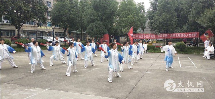 南漳县太极拳协会认真贯彻落实省市关于开展五项五进活动的文件精神和县文旅局的部署要求,9月9日,会长金修志同志主持召开班子成员和各站点负责人会议,紧密结合南漳县实际情况,研究制定了活动方案,进行了周密地安排部署,计划举办两场展演和培训活动。 首先是太极拳进机关活动。9月13日上午,南漳县太极拳协会组织六十多人走进县人民医院开展了首场五项五进活动。太极拳协会会长金修志,秘书长赵楚胜,副会长万玉玲,副会长李风云,副会长李红艳,教练员庄春玲,王捍瑜等参加了这次活动。 整场活动分为三个板块:第一板块是宣讲,主要由金修志同志宣讲省市县关于开展五项五进活动的文件精神和部署要求;第二板块是展演,首先集体表演八法五步,然后分站点表演,县医院和湿地公园站点联合组织16人表演42式和32式太极剑,学府路站点和食为天站点联合组织16人表演和式太极拳精要18式,县老年大学站点组织13人表演24式太极剑,便河社区站点组织17人表演功夫扇;第三板块是培训,主要由金修志同志主讲太极拳发展历史、太极拳基础知识、太极拳基本功训练和习练太极拳基本常识等。 老年大学太极队表演24式太极剑 |