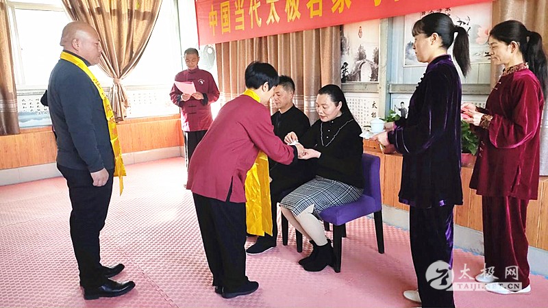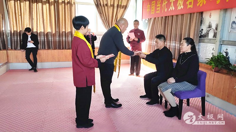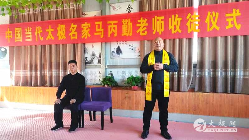(太极网讯)11月7日,中国当代太极拳名家、2019年度十大“太极拳风云人物”、陈式太极第十二代传人马丙勤收徒仪式于开封市马丙勤太极养生馆举行。本次拜入马丙勤老师门下的有马志强、李洪双这两名优秀的太极拳爱好者。他们顺利通过马丙勤老师的重重考验,正式成为太极拳传承人,肩负起传播太极拳,弘扬太极文化的历史使命。 开封市陈式太极拳马虹拳法研究会理事楚开生主持活动并致欢迎词 新入门弟子上前向师父、师母行鞠躬礼,师父亲自为弟子披挂中华太极拳传承人绶带。随后,新入门弟子依次向师父师母递交拜师贴、行拜师礼、敬拜师茶。 拜师仪式 新入门弟子马志强与师父师母合影 新入门弟子李洪双与师父师母合影 马丙勤老师向新入门弟子训话,希望他们能够恪守门规祖训,认真习练太极拳,用心体悟太极文化,时刻秉持太极拳传承人的风骨,发扬马虹精神,为太极拳的推广和传播做出积极的贡献。 师父马丙勤训话 新入门弟子马志强、李洪双依次发言 两位新弟子表示定当遵循师父教诲,练好太极拳,做好太极人,不辜负师父的信任,将马虹精神发扬光大,为太极拳的传播和推广不懈努力。 新入门弟子与师父师母合影 马丙勤弟子杨长青、刘立然、马继红、杨艳莉继依次演练,为本次收徒仪式助兴。