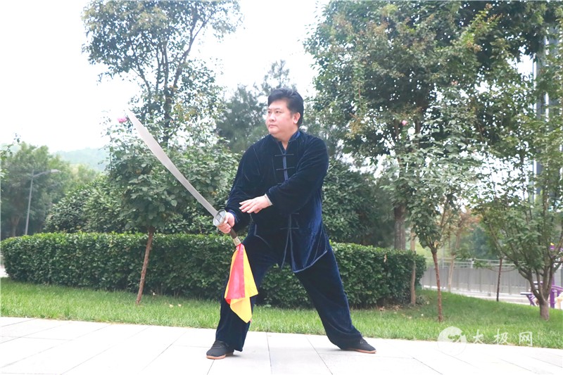 他自幼喜爱体育运动,学生时代曾荣获国家二级运动员、省优秀运动员等荣誉称号;他酷爱中国武术,先后练习过中国式摔跤、南拳等;他有缘结识传统杨氏太极拳第六代传承人郝明之老师,随老师学拳多年,并如愿拜入恩师门下;他授拳多年,学员已遍布全山东省各区县。他就是在2020“红棉杯”第六届太极拳网络视频大赛中荣获中年组杨式太极器械一等奖,并荣膺2020“年度最美太极人”称号的张勇。 张勇太极刀势 张勇的恩师郝明之先生系济南市杨式太极拳研究会会长,自青年时期就拜杨式太极拳第五代传人刘仲桥先生为师,深得到杨式太极拳精髓,是杨式太极拳在济南地区的第六代传人。郝明之先生个人演练和授拳忠实于杨澄甫大师晚年所定型的杨式太极拳大架,注重体会老拳谱的拳理,功夫纯正深厚。著有《杨式太极拳》一书,并将收藏多年的古版《增演易筋洗髓内功图说》一书委托新华出版社进行了全新翻版印刷并在全国新华书店发行,特意附《后记》一篇,以便广大太极拳及健身养生爱好者更好的学习。他性情温和,授拳诲人不倦,深得武林同道的敬重,在五十年代参加济南市太极拳比赛获第一名,所教授的学生遍布全国各地,是济南地区的太极拳名家。 在跟随恩师郝明之练拳的过程中,其中有一件事另张勇印象深刻,那是发生在恩师郝明之庆祝86岁生日时的一件事,张勇与同门师兄弟二百多人相约在济南著明的七十二名泉之一洪范池所在地,也是济南的玫瑰之乡,盆景上水石的产源地平阴同聚一堂为老师祝寿,在游览美景期间,张勇因一块西瓜大小的上水石的价格问题与摊主发生争执,险些动手。第二日,郝明之师父便以此事对他进行了教导,师父说,遇到问题首先要去想如何化解,这和太极推手是一个道理,为这事你跟人家发脾气动手了,这就是顶了,所以你这些年基本功练的不行啊,我们练拳是为了维护正义,传播正能量,只有在需要传播正能量的时候才可以挺身而出。随后郝明之师父又语重心长的对他说:“太极拳的拳理、道理、原理与人生的哲理是相通的,只有取长补短相互运用,人生的境界才能有所提高,人生才会活的更加精彩。”恩师此番话另张勇羞愧难当,终身难忘,恩师的高尚武德、博大的胸怀令人折服,这也使得张勇更加坚定了自己跟随恩师练拳的信念。