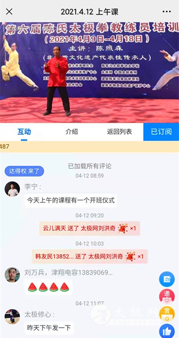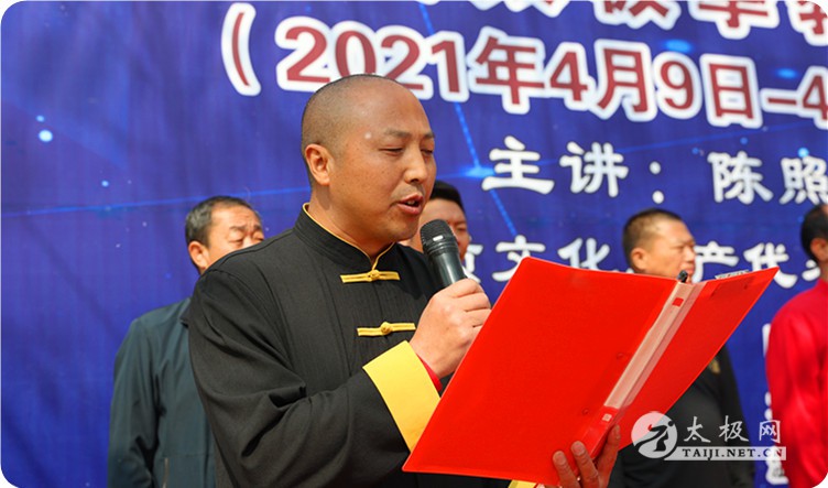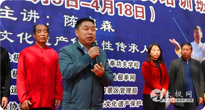 任海林在讲话中代表温县太极拳武术文化管理中心、温县武术协会向本次培训班的开班表示祝贺,对陈照森老师给予高度评价和肯定,祝愿陈家沟太极拳功夫学校的发展越来越好,为传承、弘扬太极拳文化做出更大的贡献。