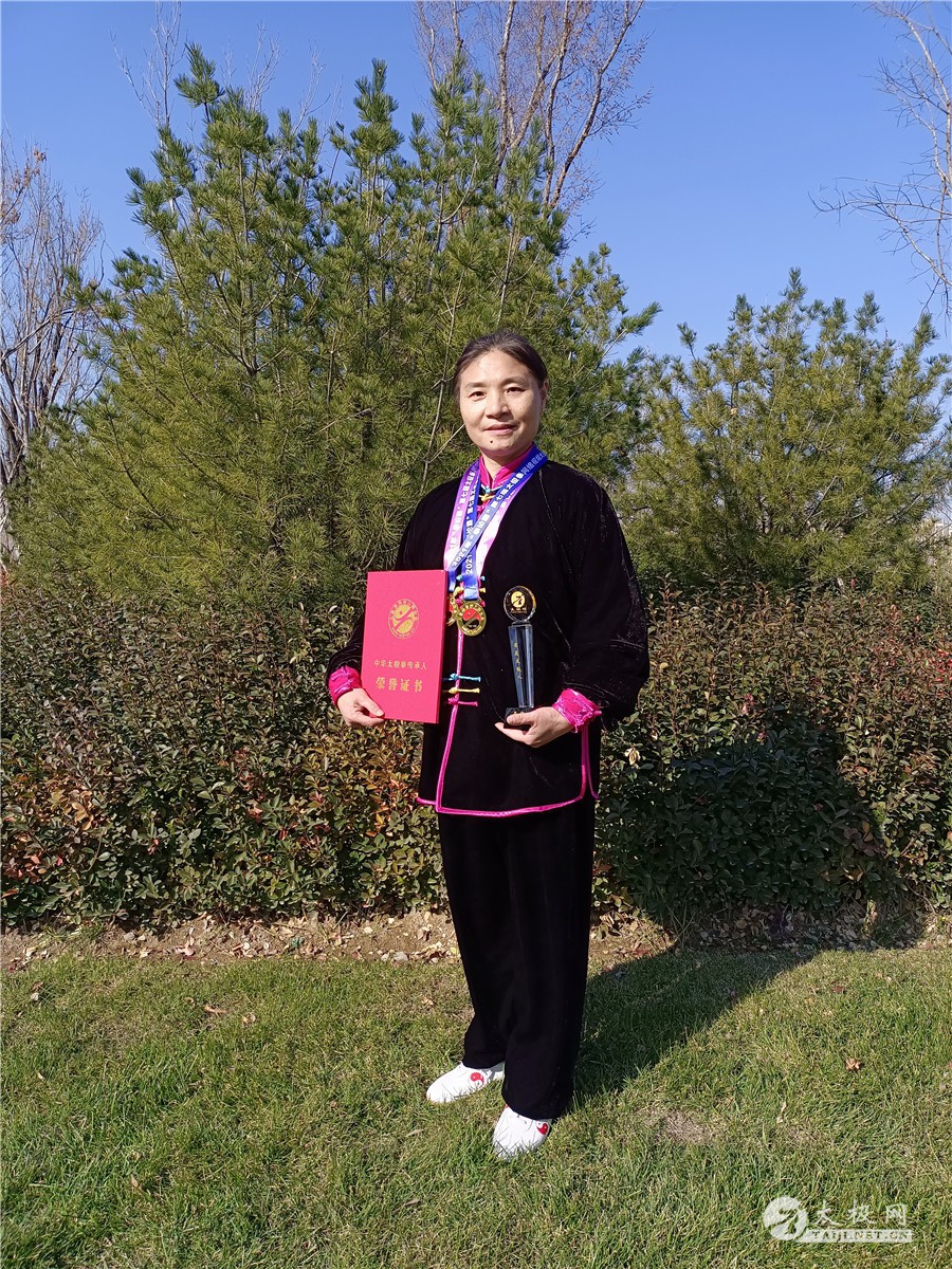 她简单纯粹,端庄秀丽,面上始终挂着一抹沉静的笑意;她虽半生已过,华发渐生,却依然热爱生活,对于认定的事情依然会全力以赴;她享受拳师的身份,虽然这个身份牺牲了她几乎所有的业余时间;她相信人生没有白走的路,只要扎扎实实地付出,努力过的脚印会一步一步带着你走向人生高点。她就是太极名师刘国明的入室弟子,杨氏太极拳第八代传承人,山东易和太极文化中心理事会秘书,2021年度最美太极人韦娟。 出生在山东济南的韦娟,自幼就喜爱武术运动,内心藏着对于武术的热爱。1993年,她在工作单位结识了一名济南太极拳协会的老师,被老师行云流水、刚柔并济的拳姿所深深折服,自此便喜欢上了太极拳,开启了一段与太极拳不解的缘分。 韦娟回忆,刚开始练拳的时候,自己就像个小学生一样跟随在老师的后面,老师教什么自己就练什么,老师说怎么练自己就怎么学,从简化24式太极拳开始到32式太极剑,从断断续续地完成一套拳到熟练掌握几套拳械套路,自己用了两年的时间。 韦娟本以为可以跟随着老师在太极拳的道路上继续精进,无奈因为工作上的调动,自己只能暂别济南,暂别老师;又因为生活的繁忙,自己只能暂别了太极。俗话说,曲终未必人散,有缘自会相逢。人生忙忙碌碌,兜兜转转,2013年,时隔20年,韦娟重新回到了老家济南,与太极拳再次重逢。 韦娟格外珍惜这次久别重逢,2013年至2017年,五年的时间,她遍访多位优秀的拳师只为太极拳,只为将太极拳练得更好。经过岁月的沉淀,人生阅历的积累,韦娟已不再是当初远走他乡的韦娟,对于工作和生活,她有了更大的把控感,忙和累已不再成为求学练拳道路上的理由,她将自己全身心地投入到修习太极之中,时刻保持着学习的状态,见缝插针地去学习,步履不停地去成长。2014年,她考取了中国武术段位证书三段;2015年,考取了太极拳社会体育指导员证书三级;2017年6月,考取了太极拳社会体育指导员证书二级。期间,她参加了多次太极拳相关培训,学习了多种拳术、器械,不断在太极拳修习的道路上充实自己,精进拳技。 在韦娟看来,每邂逅一位太极老师,都是一次新的开始。她对每一位老师都心存感恩,老师们无私传授的恩情、孜孜不倦地态度、以及对于太极拳的执着与热爱都散发着不一样的人格魅力,为自己内心注入了强大的内动力,影响着自己使自己不断地向他们学习靠近。 “像崔志强老师,他一年四季,无论是酷暑还是寒冬,每天都坚持在幸福柳广场习拳教拳。记得有一年冬天,我和拳友向崔老师学陈氏太极扇。崔老师因为白天要带外孙没有时间,所以就只能选择晚上出来教我们。济南的冬天还是很冷的,晚上最低温度有零下十几度,我特别怕冷,但是在他鼓励和引领之下,我坚持学完了套路。”韦娟回忆起和老师们一起学拳的时光,言语间充满了感动。 2018年,韦娟迎来她在修习太极道路上的一个重要转折点,她结识了杨氏太极拳名家刘国明老师,并有幸拜入刘国明老师门下,成为一名杨氏太极拳传承人。 据韦娟回忆,她是经由师姐的介绍,先进入师父刘国明老师的太极拳空中大课堂,聆听师父讲解太极拳拳理拳法和道德经。课堂上,她被师父的博学所振动,认识到原来太极拳不只是练拳架,原来太极拳作为中国的国粹如此的博大精神,原来太极拳不只是一套拳术,更是一种文化一种哲学,原来学习太极拳还可以这样学这样悟。 后来,她便报名参加了师父的传统杨氏太极拳115式夏季培训班。培训班之上,师父身形矫健、声音洪亮,耐心细致地为大家讲解拳理拳架,逐招逐式地为示范指导。因为天气炎热、过于劳顿,师父在培训的第二天便因为中暑头晕不适被120救护车拉去医院救治。就在学员们为师父担心时,师父却在隔天早上来到了培训班,一如往常般为学员们授课。师父对于太极拳地赤诚之心以及大无畏的奉献精神,都令她由衷地钦佩。在师父的悉心指导之下,她慢慢地可以体悟领会招式中的沉肩坠肘、松腰落胯、虚实转换,了解攻防技巧,在练习太极推手后慢慢地知劲懂劲。太极拳的奥妙让她越来越着迷,在师父决定开山收徒时,她便毅然地递上了拜师贴,成为了师父的入室弟子,成为了一名真正的太极拳传承人。 一名合格的太极拳传承人,要肩负起传承和弘扬太极拳的责任和使命,为太极拳事业的发展不懈努力,贡献自己的力量。韦娟,早在2016年,便在所在社区组织成立了太极站和健身气功站,尽心尽力地带领着队员和太极拳爱好者晨练、组织参加培训班参加比赛,无偿地传授太极技艺,为推广太极拳事业、全民健身、丰富社区文化生活做出了积极的贡献。2018年,她荣获了济南太极拳推广中心二〇一八年度积极参加全民健身各项活动”先进个人”称号。在成为一名太极拳传承人之后,她接下了山东易和太极文化中心理事会秘书的职务,认真地配合师父进行太极拳、推手培训,辅助教学陪练,跟着师父和师兄弟姐妹们经常参加太极拳宣传活动和参赛,一步一步朝着合格的太极拳传承人迈进。 人生没有白走的路,每一步都算数的。中间或许会走弯路,但只要知道自己想要什么,遵循内心,坚定信念,尽量往哪里走,总会走到你想要走的高度。 2019年起,韦娟每年都参加太极网主办的太极拳网络视频大赛,对于韦娟来说,参加比赛既能和拳友们同台竞技,又能交流学习,有助于自己提高拳技。连续三年的参赛,韦娟的成绩一次比一次优异,也从