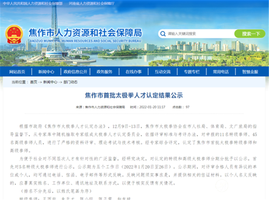 根据市政府《焦作市太极拳人才认定办法》,12月9日-13日,焦作市太极拳协会在市人社局、体育局、文广旅局的指导监督下,从专家库中随机抽取专家组成太极拳人才认定委员会,依据评审标准与考评办法,对申报的11名特级拳师、45名高级拳师人员,进行了严格的资料评审、理论考试与技术考核。经专家综合评定,认定了焦作市首批太极拳特级拳师和高级拳师。 为便于社会对不同层次人才有针对性的广泛监督,经研究决定,对认定的特级和高级太极拳师分期分批予以公示,首先对5名特级太极拳师进行公示,公示期为五个工作日(2022年1月20日至26日)。公示期间,对评审合格人员有异议的单位或个人,均可通过电话、信函、电子邮件等形式反映。反映问题须实事求是,并提供相关的佐证材料。以个人名义反映的,应署真实姓名、工作单位、通讯地址及联系方式,以便于核实反馈有关情况。 特级拳师:王西安、朱天才、陈小旺、陈正雷、和有䘵 个人主要简介: 王西安,男,1944年6月出生,陈式太极拳第十一代十九世传人,当代陈式太极拳代表人物,首批国家级非物质文化遗产陈式太极拳传承人,国际太极拳文化传播大使。国家武术高级教练,中国武术九段,河南武术“改革开放40年杰出人物”。现任中国民间武术家联谊会会长;河南师范大学名誉教授;陈家沟武术院创办者。主要理论著作有:《陈式太极老架》、《陈式太极拳推手技法》、《陈式太极拳老架秘诀》等。 朱天才,男,1945年7月出生,陈式太极拳第十一代十九世传人,国家级非物质文化遗产陈式太极拳传承人,中国武术九段,河南武术“改革开放40年杰出人物”。“国际太极拳教练”,“新加坡陈式太极开山人”,“陈式太极拳在韩国第一代传人”。主要理论著作有:《陈氏太极拳引蒙入路》,《天才太极拳精句荟萃》、《朱天才解读太极拳》等。 陈小旺,男,1946年10月出生,陈式太极拳第十一代嫡宗传人,国家级非物质文化遗产陈式太极拳传承人,世界陈小旺太极拳总会会长,中国武术九段。河南武术“改革开放40年杰出人物”,第七届全国人大代表,河南省第七届政协委员,曾担任河南省武术馆副馆长,河南省武术协会副主席,深圳市武术协会荣誉主席。主要理论著作有:《世传陈氏太极拳》、《陈氏三十八式太极拳》等。 陈正雷,男,1949年7月出生,陈式太极拳第十一代第十九世嫡宗传人,国家级非物质文化遗产陈式太极拳传承人,中国武术九段,国家体育总局武术研究院专家委员会专家,国家级社会体育指导员,中国体育科学学会委员,曾担任河南省武术馆副馆长,建国60年“感动中原人物”,剑桥世界杰出华人,河南武术“改革开放40年杰出人物”,《中华武术》“中国太极拳最具影响力人物”。2020年度十大非遗人物。主要理论著作有:《陈氏太极拳全书》、《陈氏太极拳剑刀》、《陈氏太极拳术》等。 和有䘵,男,1964年1月出生,和式太极拳第六代嫡系传人,国家级非物质文化遗产和式太极拳传承人,中国武术八段,温县和式太极拳学会会长,温县和式太极拳学院院长,焦作第十二届政协常委,第十三、十四届政协委员,温县人大常委。主要理论著作有:《和式太极拳谱、附教学vcd》、《中国武术段位制系列教程--和式太极拳、附教学vcd》等。 焦作市太极拳协会 2022年1月19日 来源:市人力资源和社会保障局 |