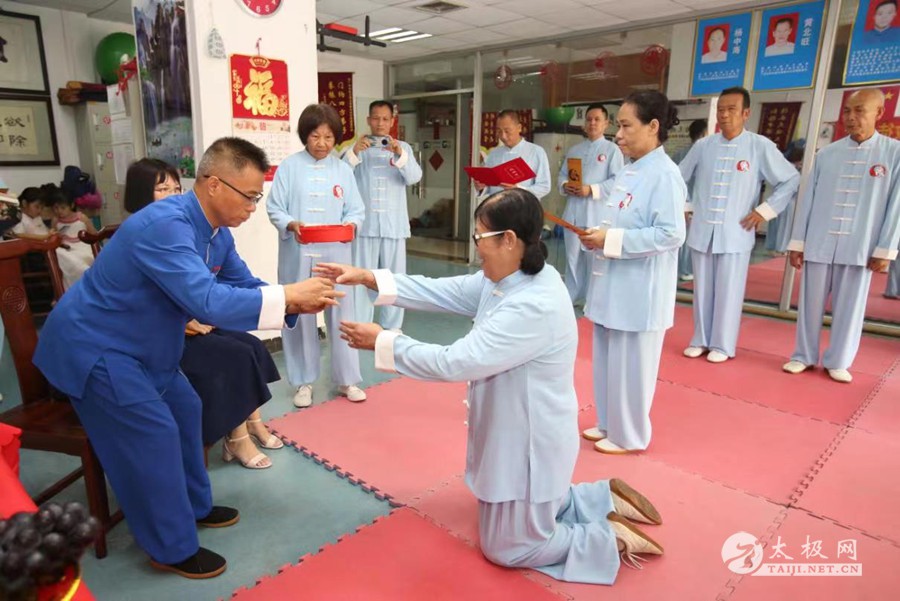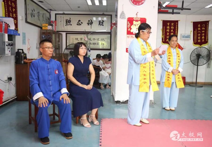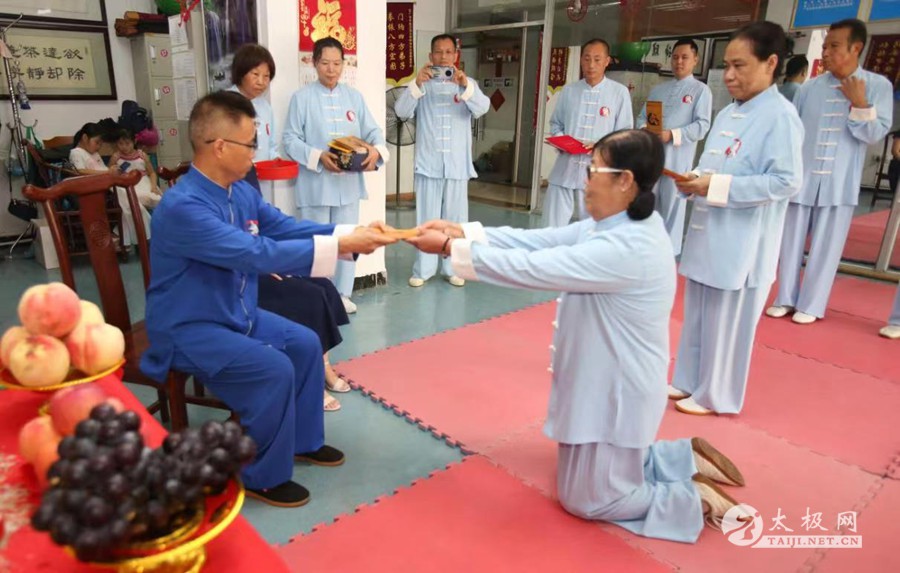 (太极网报道)2022年9月18日,陈氏太极拳第十三代传承人、太极拳名家萧劲松先生收徒仪式在广州市陈志强太极拳白云分馆举行。黄婉明和陈国庆通过传统拜师仪式成为入室弟子,仪式遵循传统,简洁庄重。出席仪式的领导嘉宾有广州市白云区武术协会会长谢焰奇、广州市白云区武术协会秘书长李志辉以及萧劲松老师的全体入室弟子。 入门弟子向先祖上香敬酒 师父师母入座 入室弟子集体宣读拜师贴 新弟子叩拜师父师母、递交拜师帖及礼金,并向师父师母敬茶。师父向弟子颁发传承证书,佩戴传承人绶带,赠送礼品。 师父萧劲松训话 萧劲松师父告诫弟子,希望黄婉明和陈国庆女士能够恪守门规祖训,用心习练太极拳,研修太极文化,为太极拳的推广和传播做出积极的贡献。 新入门弟子代表黄婉明讲话 黄婉明女士代表新弟子发言,非常荣幸能够拜入萧劲松老师门下,今后会以师父为楷模,团结同门,尊师重道。弘扬民族文化,传播太极精神,探索太极精髓,为继承发扬传统陈氏太极拳而奋斗终生。 见证人谢焰奇和李志辉先生在致辞中寄望黄婉明和陈国庆女士,拜师成为传承人更要潜心学习,坚持不懈,重武德修心性,同门团结一心,承师传艺,禅悟阴阳,礼敬前辈师长,真正做到理解太极、练好太极、用好太极。 入门弟子向来宾鞠躬行答谢礼,全体人员合影,收徒仪式圆满成功。 太极拳档案:萧劲松,1970年出生于广州市白云区,自幼习练传统武术。是河南陈家沟陈氏第十九世太极拳传承人、陈家沟太极拳“八大天王”之一陈志强老师入室弟子,中国武术六段、陈氏太极拳第十三代传承人、国际太极拳教练、国家高级太极拳师、二级武术裁判、二级武术教练员、国家社会体育指导员、花都区太极拳协会理事、陈家沟太极拳研究会副秘书长、广州市白云区陈志强太极拳推广中心总教练、广州市陈志强太极拳白云分馆馆长兼总教练。 责编:申烜臣 |