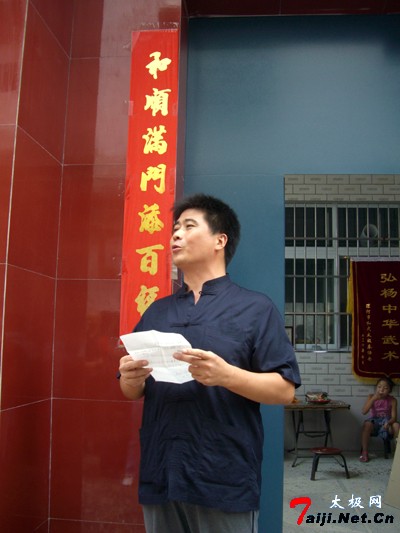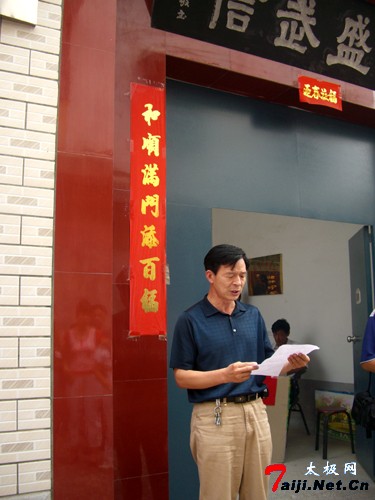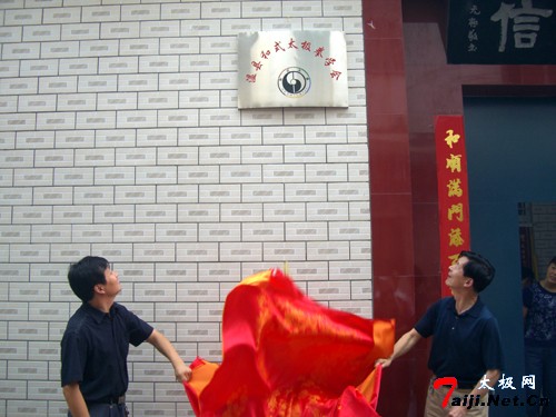 温县太极拳研究发展中心秘书长原福全主持揭牌仪式 2007年7月26日,温县和式太极拳学会成立三周年迁址揭牌仪式在温县商贸城和有禄先生的新居举行。