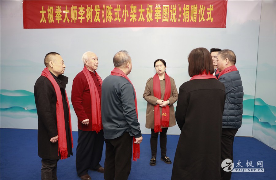 (太极网讯)2023年3月3日,太极拳大师李树发一行专程从古城西安来到太极拳发源地温县,在太极网总部举行《陈式小架太极拳图说》捐赠仪式。温县档案馆馆长田春花,温县图书馆馆长邓瑞娟,温县文化馆馆长、县非物质文化遗产保护中心主任闫忙种等领导出席仪式并接收著作存档。李树发弟子、《陈式小架太极拳图说》主编张勇刚及同门主创团队参与。太极网创始人刘洪奇出席见证,太极网总编李超主持仪式。 《陈式小架太极拳图说》历时三年设计编撰,由李树发老师及其核心弟子团队发起策划,在太极网团队的全力配合支持下,该书编撰尊古出新,理论详实完备,通过二维码网络技术等实现图文视频立体客观的展示,于2022年完稿并于香港出版发行,发布会在古城西安举办。此书是以陈式小架太极拳一路和二路的拳架及理论为主的论著,著作的出版为太极拳弘扬起到了积极作用。 根源陈沟,情系古温。李树发师承一代宗师陈金鳌,作为陈家沟太极拳传承人,他始终不忘太极拳本源,数十载传承推广,呕心沥血完成个人理论著作,不忘回馈,向太极拳发源地温县相关文化部门捐赠著作,终圆遂愿。 李超主持仪式 太极拳档案: 李树发,生于1937年,河南封丘人,师承一代太极拳宗师陈金鳌,陈式太极拳第十代传承人。2006年和同门师兄弟创建西安陈金鳌太极拳学会,现为学会名誉会长,2016年太极网、温县太极拳传承人联合会向其授予“终身成就奖”,太极拳年会颁发“太极拳大师”称号,门下传承弟子三百余人,门下分会遍布大江南北。 责编:申烜臣 |