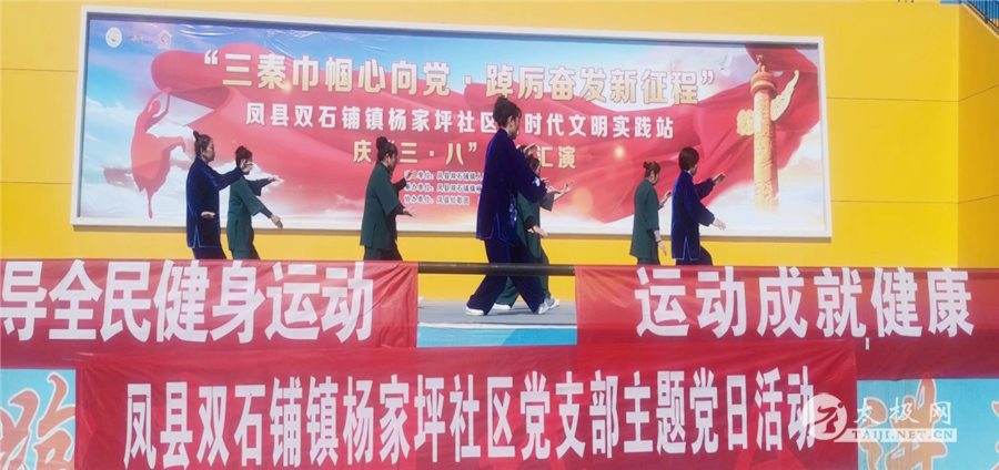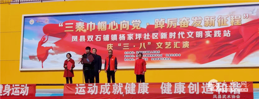 3月6日下午,凤县双石铺镇杨家坪社区、凤县武术协会在凤县体育场开展了主题为“三秦巾帼心向党,踔厉奋发新征程”,庆祝我国第100个,国际第113个“三·八”妇女节。 这次活动是由凤县双石铺镇人民政府主办,凤县双石铺镇杨家坪社区、凤县武术协会承办,凤县红歌团、凤县朗诵艺术协会协办。凤县双石铺镇杨家坪社区领导主持开幕,凤县双石铺镇领导致词。活动在喜庆祥和的气氛中拉开序幕。 凤县武协的太极拳、太极剑刚柔相济,威武雄壮,动作细腻,舒展大方,打出太极人的精气神。 红歌团的舞蹈、小品、三句半节目精彩,内容丰富体现了妇女同胞牢记使命跟党走,砥砺奋进勇担当;贯彻落实二十精神,践行为民服务的信心和决心! 遇见的是天意,拥有的是幸运;是那夜空中最亮的星星,照亮我一路前行。《早安隆回》唱出了青年志愿者的心声。 芊芊淑女,婀娜旗袍着身,曼妙多姿,笑颜如花绽,玉音婉转流;皎皎兮似轻云之蔽月,飘飘兮若回风之流雪。君不见那绫罗绸缎,艳之韵之,芸芸众神赞,飘飘仙子舞。凤县朗协的旗袍秀走出了妇女姐妹的知性美。 山也美,水也美,山水之间流淌着中国美。山歌好比长江水,号子一喊黄河醉。天也美,地也美,顶天立地中国人最美。中国的美是婉约的美。中国的美是豪迈的美。 巾帼不忘须眉,柔肩亦担重任;此项活动开展,不仅丰富妇女姐妹的文化生活,而且能陶冶情操,增强了凝聚力。“我运动,我健康,我美丽”! 凤县武术协会 李琳 2023年3月6日 |