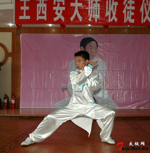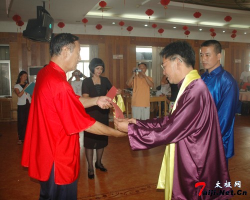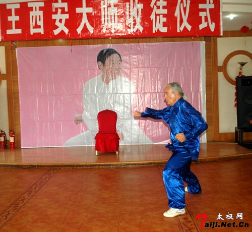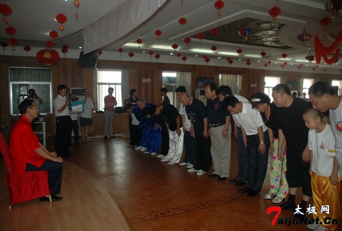 这天上午,来自王西安拳法研究会法国分会、意大利分会以及韩国、澳地利等国的太极拳爱好者朋友欢聚一堂,共同参加王西安大师的收徒仪式。温县体育局负责人,温县红棉鞋业集团顾问、原体育局局长原福全等也到会祝贺。