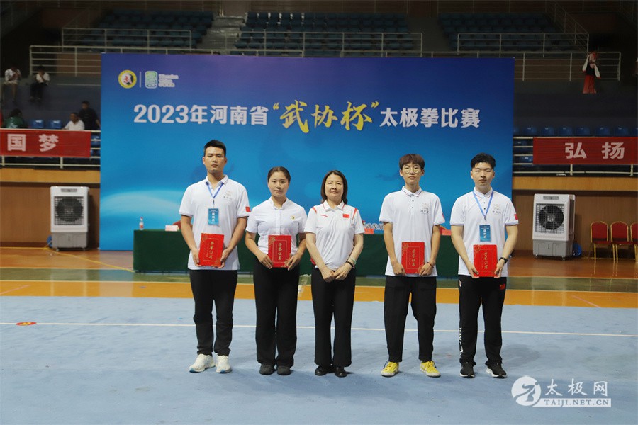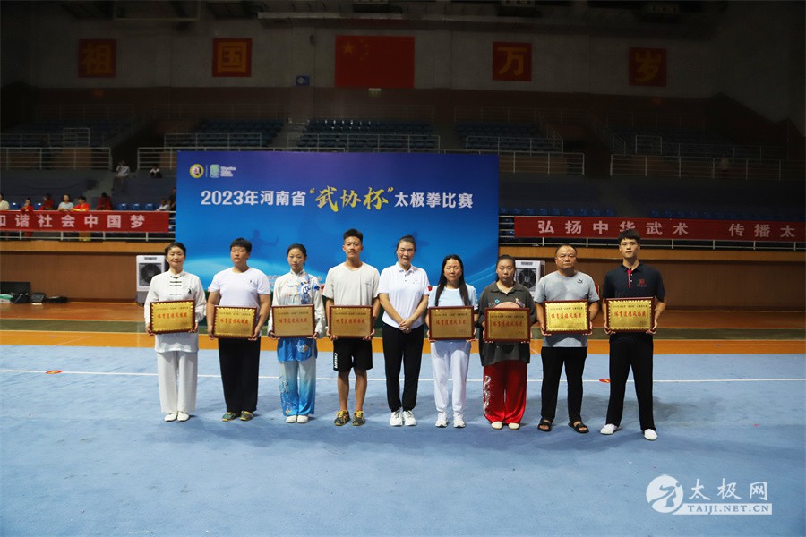 2023年7月31日上午,2023年河南省“武协杯”太极拳比赛在温县陈家沟太极拳文化国际交流中心举行。 赛场上,参赛运动员动作行云流水、松柔慢匀,用精湛的技艺完美演绎出太极拳特有的风采。 此次比赛时间为7月30日至7月31日,设有太极拳套路和集体比赛两大项目,分设儿童组、少年组、青年组、成年组、老年组5个组别,吸引了开封、许昌、焦作、商丘等地40支代表队500余名运动员前来参赛。 2023年河南省“武协杯”太极拳比赛 颁奖名单 优秀裁判员(4人) 张宇浩 原宁辰 郑晓瑜 轩心越 体育道德风尚奖(8队) 王战军太极学校 郑彩霞太极拳馆 博爱武术协会 陈家沟太极拳学校 温县朝霞太极拳推广中心 沁阳晓峰太极馆 少林延鲁武术学校 河南共兴人力资源开发服务有限公司现代太极艺术团 获得集体项目 第一名:王战军太极学校 第二名:温县朝霞太极拳推广中心 第三名:少林延鲁武校 第四名:陈家沟太极拳辅导站 第五名:夏邑县武术之乡代表队 第六名:商丘市武术协会 第七名:沁阳晓峰太极(一)队 第八名:沁阳晓峰太极(三)队 |