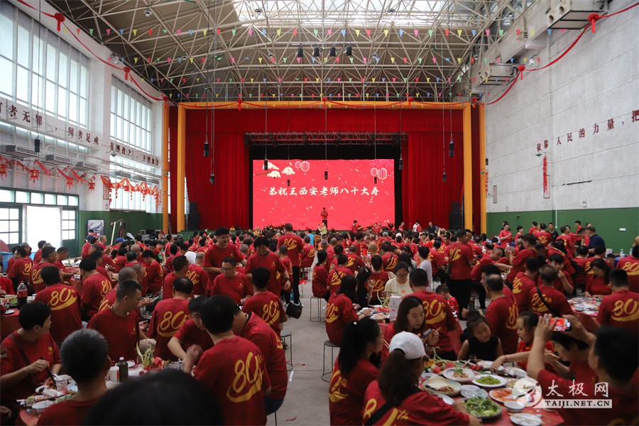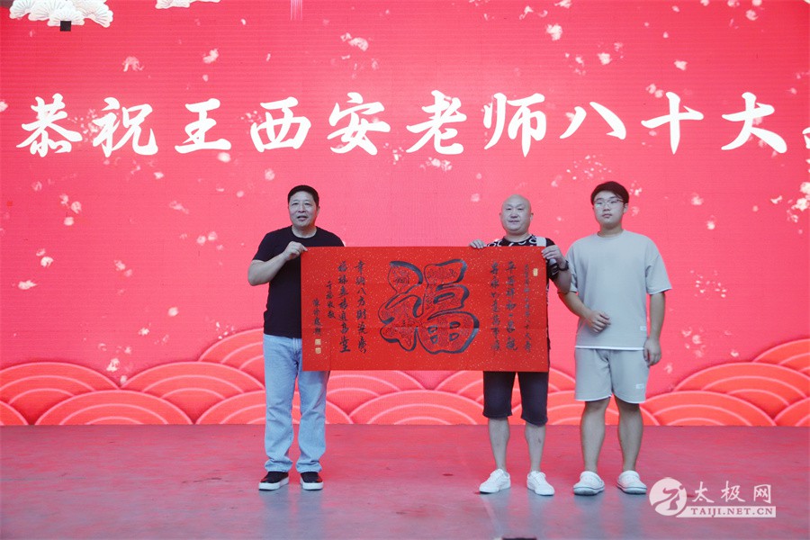 (太极网讯)2023年8月12日,国家级非物质文化遗产陈氏太极拳代表性传承人王西安八十寿诞庆典活动于太极拳发源地隆重举行,来自全国各地的王大师弟子传人、亲朋好友及众多武术界好友近三百人欢聚一堂,在印象太极全域剧场观看完节目后,共同为誉满海内外、德艺双馨的王西安大师祝寿。 王西安大师家人向他祝寿 弟子向师父王西安祝寿 王西安老师是当代陈氏太极拳“四大金刚”之一,享誉拳界的“国际太极拳王”。太极人生数十载,扎根故土,坚守在太极拳发源地,用一腔热忱回馈家乡父老,传道授业,将太极拳传播至世界各地,桃李满天下。 寿宴安排在中国太极拳国际交流中心东厅太极大剧场,祝福的话语、真挚的感情洋溢着整个寿宴会场,在场者都在用各自的方式庆祝王西安大师的八十岁寿诞,祝福王西安大师福如东海长流水,寿比南山不老松!共贺恩师喜寿,现场即兴演出,和谐融洽,为王西安大师献上了一场别开生面的生日寿宴。 |