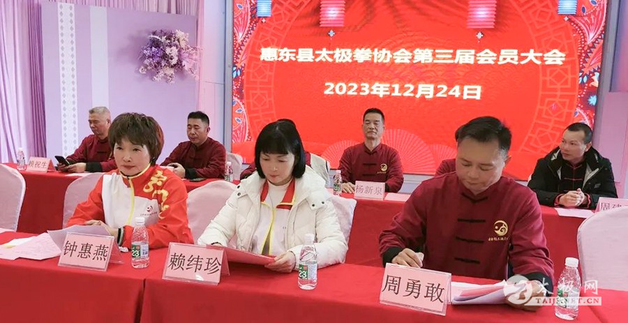 2023年12月24日下午,惠东县太极拳协会在惠东县荞洋酒店隆重举办第三届会员大会及第三届理(监)事就职典礼,协会250多名会员参加了活动。惠东县文化广电旅游体育局、惠东县民政局有关领导及惠州市太极拳协会、惠州市健身气功协会、惠州市搏击协会、惠州市中威太极馆、广东省武术协会段位推广部、海丰武术协会、陆河武术协会,陆河太极拳协会,大亚湾太极拳协会、惠东县老干部大学、惠东县老年体育协会、惠东县象棋协会、惠东县登山户外运动协会、惠东县蓝天救援志愿者协会等相关友好协会机构的主要领导及惠东县电视台,惠东万事通等新闻媒体朋友应邀出席了理(监)事就职典礼。 会员大会就协会第二届理事会工作进行了总结,对协会先进会员进行了表彰。大会选举了协会新一届理事会、监事会,选举产生协会第三届会长、名誉会长、副会长、监事长、秘书长、总教练、副总教练等。协会新一届领导班子成员为: 会长:周勇敢 常务副会长:杨新泉,张广治 副会长:钟永招,郑文卿,王瑞书,赖祝生 秘书长:赖勉丽 第三届理(监)事就职典礼上,新当选惠东县太极拳协会会长周勇敢代表新一届班子发表了热情洋溢的讲话,表示理事会将不忘初心、不负重托,继续带领惠东县太极拳协会全体会员弘扬太极拳文化,推广太极拳强身健体运动,为推进惠东太极拳运动事业发展,建设和谐惠东作出贡献。 第三届理(监)事就职典礼上,惠州市太极拳协会会长彭爱华女士、惠东县文化广电旅游体育局副局长宋培如先生和体育总会副会长朱广文先生发表致辞,对当选的新一届理事、监事及协会领导班子成员表示祝贺,鼓励惠东县太极拳协会下来要大力推动惠东太极拳运动活动的开展、组织与市内外有关太极拳团体开展交流联谊活动,积极组织会员参加国内外太极交流比赛,提高惠东太极拳协会的水平和良好影响力,为惠东县文明和谐发展作出贡献。 第三届理(监)事就职典礼上,协会向广东艺都科技有限公司、惠州市昇达科技有限公司和惠州市赢丰建筑工程有限公司等3家热心企业赠送了牌匾,感谢企业家们对惠东县太极拳工作的支持赞助。 第三届理(监)事就职典礼上,惠州太极圈内太极名家及协会会员进行了太极现场展演。惠城区人大常委、陈式太极拳大架第十二代传人、陈式太极拳小架第十三代传人、中国武术七段、国家级社会体育指导员、国际太极拳文化传播大使、惠州市中威太极馆创始人李体育,惠州市搏击协会常务副会长、陈式太极拳第十一代传人、中国武术七段、国家一级指导员李永周,惠州市搏击协会副会长、中国武术六段陈超,以及惠东县太极拳协会副会长赖祝生,总教练周建平,副总教练范泽钜,华侨城站、南湖站、西枝江站、梁化站、吉隆站、黄埠站等代表现场进行了太极拳、剑、和太极气功展示表演,展示了太极拳一种静态的动态美,柔和动作中的力量感和节奏点,精彩太极拳、剑、气功表演把活动推进高潮。 据悉,惠东县太极拳协会于2017年成立,是惠东县内太极拳运动爱好者自愿组成的民间群众性社会团体,协会以“发扬太极、强身健体、联络和团结广大太极拳爱好者,普及规范,弘扬太极拳运动,以拳会友,为推进太极拳运动事业发展,建设和谐惠东作出贡献”为宗旨,现有会员300多人,形成以华侨城站、南湖站、西枝江站、梁化站、吉隆站、黄埠站、稔山站、大岭站、文化广场站等锻炼、教学、集训场所。协会成立以来,积极组织会员参加国内大型比赛、表演活动,收到了较好成绩。 责编:小田 |