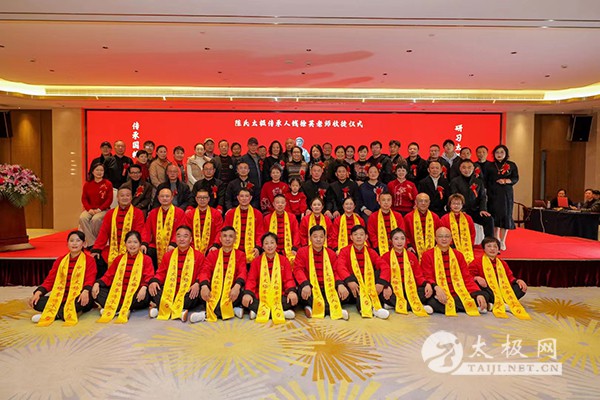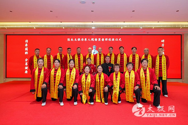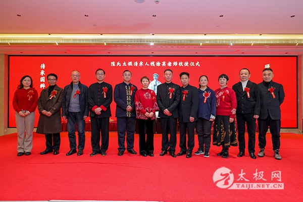 2024年1月7日,中国武术六段,常州市武术协会副会长,陈氏太极拳第十三代传人钱徐英老师收徒仪式在江苏常州市隆重举行。严志伟,刘文阳,时锡松,杨俊,张仁兴,张春妹,吴春萍,陆春玉,许湘云,张叶芬十位太极拳爱好者过师门重重考验,依照传统拜师仪式正式拜入钱徐英老师门下。 出席收徒仪式的嘉宾有常州市武术协会副主席周东林先生,常州市武术协会副秘书长朱莉女士,常州市农业银行总行经理邵斐女士,常州市天宁区餐饮协会会长陈震先生,江苏燕镶企业管理有限公司董事长李源先生,陈式太极拳第十三代传承人陶安先生,陈式太极拳第十三代传承人钱卫平先生,陈式太极拳第十三代传承人杨敏先生,常州市能亭装修装饰有限公司董事长周建元先生等应邀出席活动。 |