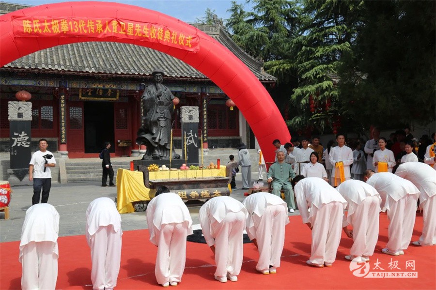 |   太极拳历经四百年,生生不息。庄重的拜师礼仪,凝聚一心,是中华传统武术文化的重要组成部分。2024年10月4日,陈氏太极拳第十二代传人陈炳老师的收徒仪式在太极拳祖祠隆重举行。来自国内各地及美国、希腊、意大利、韩国、巴西、阿尔巴尼亚、土耳其、奥地利、保加利亚、瑞典的106名太极拳爱好者,通过考核,拜入陈炳老师门下,正式成为陈氏太极拳第十三代传承人。他们誓言“学好拳、教好拳、做好人”,担负起传承世界非遗太极拳的责任。   收徒仪式由郑赢全主持。出席仪式的领导与嘉宾有:原河南省体育局武术馆副馆长林素朴,焦作市文化广电和旅游局党组成员、副局长刘立东,温县人民政府副县长王欢欢,焦作市非物质文化遗产科科长彭伟峰,温县文旅局局长张俊峰,温县粮食和物资储备中心主任赵曙光,陈家沟景区发展中心主任杨亚东,陈家沟陈氏家族理事会秘书长陈一华,重庆潮流惊喜品牌管理集团董事长胡兵,极祥物品牌管理有限公司总经理张凌,新加坡王蓉武术院院长、陈家沟国际太极院顾问王蓉女士,马来西亚陈炳太极院院长高丞鸿先生,美国陈炳太极院院长白承哲,韩国陈炳太极院院长李宇铉,阿根廷陈炳太极院院长马丁,奥地利陈炳太极院院长帕瑞斯,意大利斯基奥陈炳太极院院长布鲁娜,保加利亚陈炳太极院院长埃特蒙托,希腊奥林匹亚市陈炳太极院院长高力士,希腊雅典凯拉米克斯陈炳太极院院长皮特儿,阿尔巴尼亚陈炳太极分会会长谭笑,土耳其陈炳太极院院长内比,瑞典陈炳太极院院长樊少杰等。   温县人民政府副县长王欢欢、焦作市文化广电和旅游局党组成员、副局长刘立东先生先后讲话。原河南省体育局武术馆副馆长林素朴老师为陈炳老师赠旗并发言。各位领导、前辈对陈炳老师的武德、拳技以及传播太极拳的影响力表达了高度肯定,并希望新弟子们能够努力学习,体悟太极拳内涵,传承武德,严于律己,肩负起传承和传播太极拳的使命。   陈氏太极拳第13代传人陈绍桐宣读新入门弟子名单。陈炳老师宣读《祭祖辞》。家族代表陈一华上香,陈炳老师和夫人李双伶女士祭祖。十三代弟子毛华威、陈奕君宣读门规戒律(陈奕君宣读英文版门规)。   拜师仪式上,众弟子依次向师父、师母递交拜师帖并行拜师礼。师父、师母分别为新入门弟子颁发入门证书,披挂绶带。新入门弟子向太极拳始祖及历代宗师敬香,以示薪火相传。   陈炳师父训诫:练好拳、教好拳、做好人。以太极的思想理念修炼自身、完善自身,包容、宽厚处事待人。弘扬太极拳,坚持文化自信,为健康社会、文化强国作出自己的一点贡献。   新入门弟子代表张杰发言表示,师父谦虚自律、和蔼可亲,授拳讲解细致入微,演练示范力求极致。师父的知行合一是中华太极拳文化传承的典范,鼓励并引领着他们在太极拳的大道上不断向上探索前行。他们将竭尽全力,持之以恒,锻炼太极人之拳,研修传承人之道。   全体新入门弟子向嘉宾行鞠躬礼。最后,陈炳老师带领新入门弟子向自己的恩师陈小星大师行叩拜礼,感念师恩与培养之情。收徒仪式在领导嘉宾们的见证下圆满礼成。   陈炳老师收徒仪式结束后,陈炳老师的弟子、陈氏太极拳13代传承人李宇铉、白承哲、董卫星先后举办收徒典礼。仪式现场,陈炳老师带领新入门弟子演练了自己创编的陈氏太极拳“和谐十三式”。最后,出席本次收徒仪式的全体嘉宾和陈炳师徒三代大合影。新入门弟子与师父、师母合影留念,共同记录下这一珍贵时刻。陈炳老师收徒仪式圆满礼成! 来源:陈家沟国际太极院 责编:张梦瑶 |