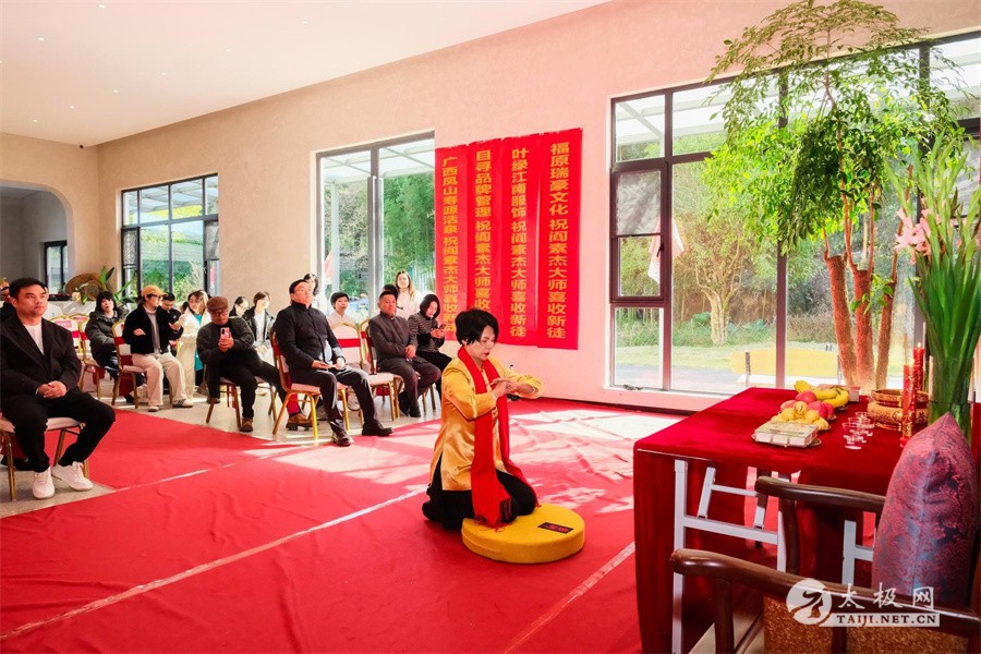 太极拳爱好者周青、颜伟、梅竞放、吴东润爱好传统文化,仰慕阎素杰道通法明,师从身畔,潜心修习,经阎素杰全面考察,玉尺量才,此次有幸列入师门。 在太极拳、太极剑、诵读素禅心语等环节之后,阎素杰老师及新入门弟子分别祭拜武圣关公及太极拳祖师陈王廷。准弟子们先后高声诵读并恭敬呈递敬表文、拜师帖,并虔敬奉茶。阎素杰依次为弟子披弟子服,赐名赐印,宣读师训及门规。仪式最后,师徒共同再次祭拜,同表传承弘扬素禅的初心。新晋弟子周青、颜伟、梅竞放、吴东润激动地表达了拜师入门的初心。因感念师恩,弟子梅竞放在台上一度哽咽难言;弟子周青对师父的慈悲接引也表达了感恩之情。 众来宾共同祝贺师父喜得爱徒,恭贺弟子喜得名师,恭贺素禅开枝散叶,收徒仪式完满结束。 责编:张梦瑶 |
