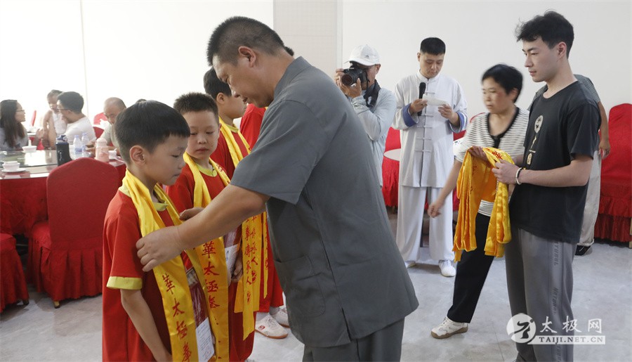 2025年7月6日,陈式太极拳第十一代传承人陈荣耀收徒仪式于焦作市北朱村举行,贺鹏轩、毋泊荃、王帝博、王宇喆四名太极拳爱好者经过考验,正式拜入陈荣耀门下,成为陈式太极拳第十二代传承人,为太极拳注入新生力量。 现场嘉宾 太极网创始人刘洪奇,同门师兄弟华勇、王伟以及陈立冬之孙陈祥云等嘉宾齐聚一堂,共同见证这一传统且庄重的时刻。 收徒仪式 收徒仪式严格遵循传统流程,现场氛围庄重而热烈。仪式伊始,陈荣耀老师先向太极拳历代宗师上香、鞠躬,表达对先辈的敬重与追思,宣告收徒传承之意。随后,新弟子们怀揣诚挚之心,宣读拜师帖,依次向师父递上拜师帖。陈荣耀老师郑重回帖,并为新弟子逐一佩戴象征传承的绶带,颁发传承人证书,师徒情分就此缔结。 师父与新入门弟子合影留念 此次收徒仪式的成功举行,不仅为陈式太极拳的传承注入了新的力量,也进一步推动了太极拳文化的发展与传播。 责编/邓豪杰 |