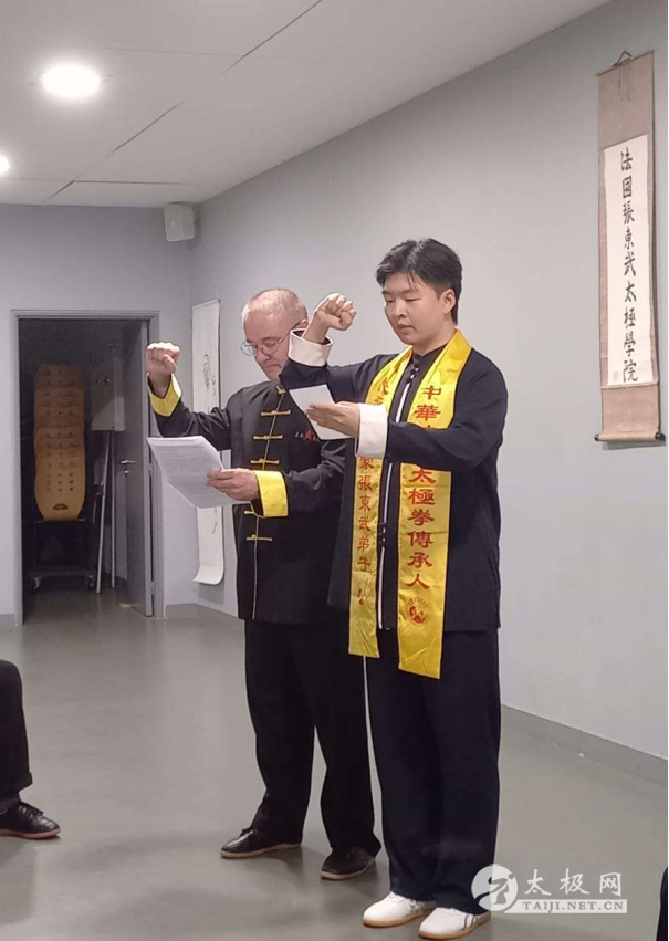 2025年10月18日,乙巳年深秋,法国千泉体育运动中心见证了一场跨越文化与时空的传承盛事。陈氏太极拳第十二代传人张东武老师在此举行庄严的收徒仪式,正式接纳法国弟子洛伊克-博赛(Loïc Bosser)入门。 张东武老师是陈氏太极拳省级代表性传承人、国际太极拳文化传播大使,今年也是他将太极拳耕耘在法兰西这片土地的第三十个年头 。 拜师仪式由张东武老师弟子冯伟,徐蓉主持。法国张东武太极学院院长Paul Sniady与张东武老师之子张宇浩作为护法弟子率先入场,十余位来自法国各地的嘉宾依次就座见证。当张东武老师步入会场时,全场肃立致敬。 半生追寻终得明师 新弟子洛伊克(Loïc Bosser)的求武之路,正是无数西方武者追寻东方智慧的缩影。他自幼便向往中国武术,十三岁初涉武术,先后习练合气道、中国功夫与杨式太极,直至2002年在巴黎得遇张东武老师。 近三年来,每逢暑假,他都从法国来到中国河南东武太极研修院深造。即使酷暑难耐,他也乐此不疲。学拳期间,他深深折服于张东武老师武学造诣的精深,更佩服他德艺双馨的大师风范,遂立下拜师的志愿。 传统仪轨震撼心灵 拜师仪式严格遵循古礼。在师兄张宇浩的引领下,洛伊克以清晰的中文宣读誓言:"诚信为本,善良为根;勤学苦练,尊师重道"。当他行三叩首大礼、呈递拜师帖时,观礼的法国拳友们无不动容。单膝敬茶时那句"师父,请用茶!"的改口,不仅是一个称谓的改变,更象征着太极拳传承的正式确立。 见证感动文化共鸣 作为见证人代表的Alexis表示:"这场仪式让我们亲眼见证了中华传统文化中师道传承的庄严与厚重。" 张东武老师在训话中勉励新弟子,希望他能勤学苦练,尊师重道,将陈氏太极的精髓在法国传承发扬。随后,张东武老师带领弟子们共同向陈氏太极拳始祖陈王廷行叩首礼。礼成时分,全场响起热烈掌声。 洛伊克·博塞,1967年生于南特,法国武术联合会五段段位。他自2016年起担任法国武术联合会卢瓦尔河大区中国武术段位制负责人,2016年至今担任国家武术委员会卢瓦尔河大区俱乐部代表,2022年成为法国张东武太极学院在大西洋卢瓦尔省的代表。 他在拜师仪式上真诚表示,将谨遵师父教诲,尊师重道、勤奋努力,并承诺自己将全力以赴,促进太极拳在大西洋卢瓦省及全法国的发展,让更多人从中受益。 这场庄严的拜师仪式在大家的共同见证下圆满结束。它不仅是洛伊克个人圆梦的开始,更是太极拳在海外生根发芽,蓬勃发展的写照! 责编:小田 |