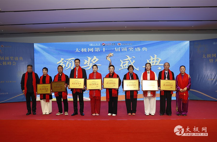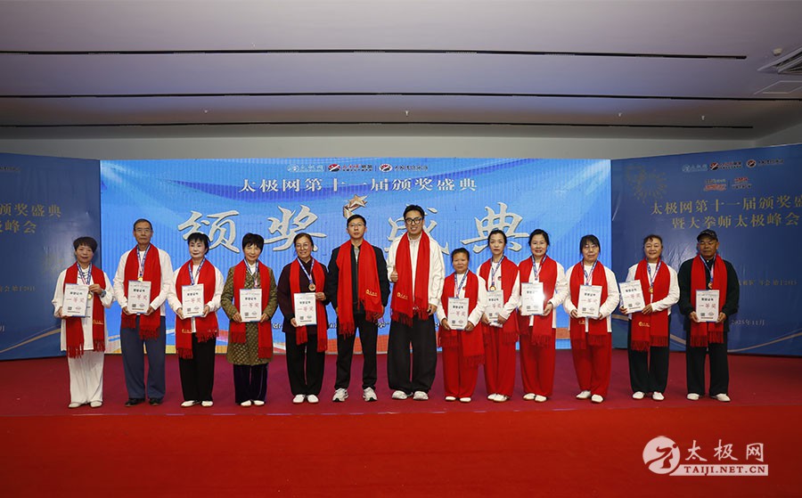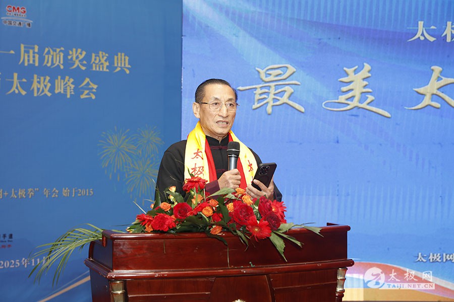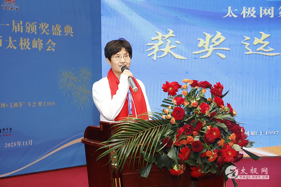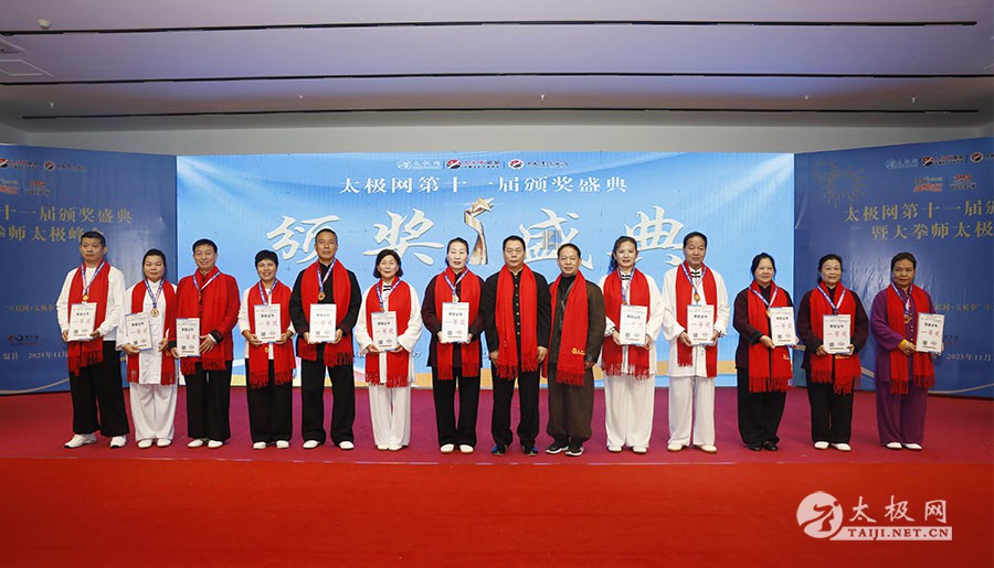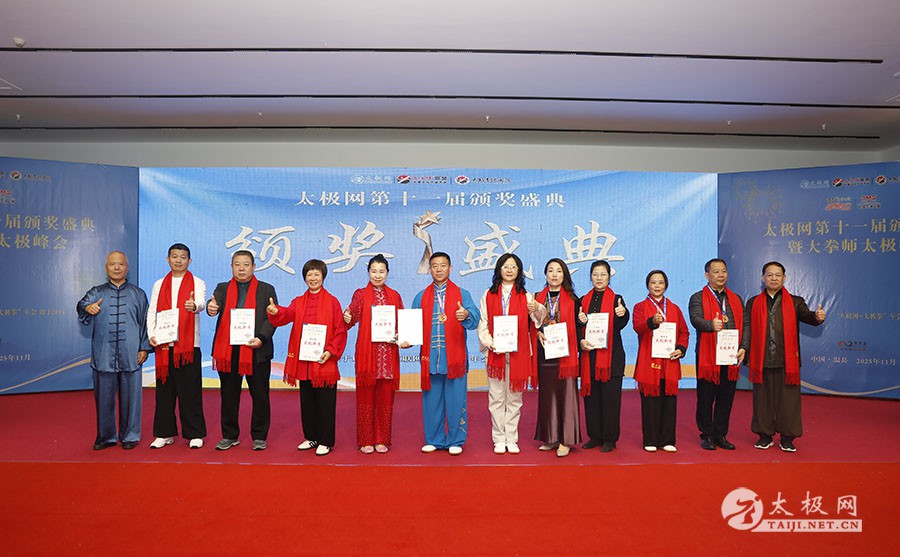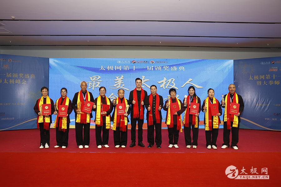 薪火相传十一载,太极盛会向新行。11月8日上午,2025年太极网第十一届颁奖盛典暨大拳师太极峰会在太极圣地河南温县盛大启幕。活动主会场设在温县海旺弘亚酒店三楼会议室,现场群英荟萃,来自全国各地及海外的四百余名各流派拳师拳友欢聚一堂,共同见证这场“互联网 + 太极拳”年度盛会的高光时刻。 作为太极网首创的核心品牌赛事活动,“寻找最美太极人”已迈入其辉煌的第十一个年头。2025年“大拳师杯”第十一届太极拳网络视频大赛吸引了世界各地的4000余名选手线上参赛。每年一度的颁奖盛典,是这一赛事线下颁奖表彰活动,同时汇聚部分参赛获奖选手、各流派太极拳名师名家及优秀传承人、众多馆校协会负责人及武术专家学者等,是广大太极人交流技艺、增进友谊的年度盛会。 中国非遗保护协会太极拳专委会副主任崔玉山出席活动并讲话。太极网创始人、大赛组委会主任刘洪奇致开幕词。焦作市文化馆党支部书记娄莎莎,太极网总编、大赛组委会执行主任李超,温县太极拳武术文化发展中心办公室主任耿谋涛,本次活动赞助方、温暖同行(北京)科技有限公司董事长王文博,开封市武术协会主席吕玉中,太极网战略合作伙伴、豫记太极直播平台创始人王明,河南百养堂生物科技有限公司董事长李红强等嘉宾出席颁奖仪式。 赵幼斌、张东武、陈向武、宋斌、赵现平、陈西立、解礼德、王仲文、苏河、王运宜、陈庆峰、张明、徐勤兰、陈彦胜、梁翠平、王林、柯鸿信、兴隆、王国营、曹树春、常子轩、周新、褚亚龙、涂跃芳、葛红、唐艳华、马国超、苗运浩、曹玉兰、李晓峰等各流派名师名家及优秀传承人受邀从外地赶来共襄盛会。 陈照森、陈有则、陈桂珍、王战军、张福旺、陈冲、陈大虎、陈有刚、陈有华、郑冬霞、陈朝霞、郑彩霞、陈三虎、陈冠军、韩建民、张世庆、陈天森、陈小水、张波、朱亚昆、郑佳琦、陈娜、党绍静、陈小芹、邓梦晓等在温名师名家及优秀传承人到场助阵,向获奖选手颁奖、进行名家表演等。 中国非遗保护协会太极拳专委会副主任崔玉山代表专委会向获奖的 “最美太极人” 送上热烈祝贺,同时向深耕太极文化传播近 30 载的太极网全体同仁表达衷心感谢。对于太极网在“非遗 + 互联网” 融合发展的实践,崔玉山给予高度肯定。他指出,连续十一届太极拳网络视频大赛的坚持与创新,将 “互联网 + 太极拳” 从概念转化为 “线上展风采、线下促交流” 的生动实践,为太极拳非遗传承注入强劲动力。 崔玉山介绍,太极拳专委会成立以来,围绕太极拳年轻化、时尚化、数字化、国际化方向,聚焦 “生命的能量 人类的遗产” 核心主题,全力推动太极拳的保护、传承与弘扬。专委会愿与各地传承人、馆校协会等加强合作,共同助力太极拳传承传播再上新台阶。 太极网创始人、大赛组委会主任刘洪奇向与会来宾及拳友致以诚挚欢迎,众人因太极相聚共证荣耀。他回顾第十届“十拳十美”盛典是太极传播里程碑,强调第十一届是新十年起点,解读“十一”“圆满后重启”的文化内涵与太极哲理契合,并提出本届倡导“松沉”与“转折”的精神与状态。 现场,刘洪奇正式宣告即将推出基于陈家沟传统双人对练技法“搿手”创立的全新赛事——太极拳搿手道联赛。赛事将以俱乐部联盟形式,依托互联网平台,邀请各地太极拳组织参与,携手书写太极拳传承新篇章。他呼吁大家共同叫响大赛口号“会太极,来搿手!” 崔玉山、刘洪奇颁发个人项目一等奖 娄莎莎、李超颁发个人项目一等奖 王文博、耿谋韬颁发个人项目一等奖 王明、吕玉中颁发个人项目一等奖 赵幼斌、张东武颁发个人项目一等奖 陈照森、王战军颁发个人项目一等奖 陈有则、张福旺颁发个人项目一等奖 陈向武、宋斌颁发个人项目一等奖 陈桂珍、梁翠平颁发个人项目二等奖 张明、王国营颁发个人项目二等奖 郑彩霞、唐艳华颁发个人项目二等奖 李超、陈小水颁发个人项目三等奖 赵现平、陈西立颁发集体项目一等奖 刘永强、解礼德颁发集体项目一等奖 苏河、陈彦胜颁发集体项目二等奖 陈三虎、王运宜颁发集体项目二等奖 常子轩、陈庆峰颁发集体项目三等奖 获奖选手代表朱誉发言 获奖选手代表王素方发言 颁奖环节氛围热烈而庄重,本届大赛的部分获奖选手与团队代表依次登台领奖。颁奖嘉宾为获奖者颁发奖牌、奖杯及获奖证书,对他们的精湛技艺给予充分肯定。领奖台上,获奖者们面带荣光、精神昂扬,与颁奖嘉宾亲切握手、合影留念,定格下这一属于太极人的荣耀时刻。 崔玉山、刘洪奇向2025年度“最美太极人”颁发荣誉奖项 李超、陈向武向2025年度“最美太极人”颁发荣誉奖项 张东武、李超向2025年度“最美太极人”颁发荣誉奖项 刘洪奇、刘洪强向2025年度“最美太极团队”颁发荣誉奖项 最美太极人代表王宏辉发言 最美太极人代表张成友发言 最美太极团队代表曹玉兰发言 随着大赛荣誉桂冠大奖 ——2025 年度“最美太极人”“最美太极团队” 命名表彰仪式的开启,现场氛围被推向高潮。获奖个人与团队代表依次登台,接受大赛“荣誉桂冠”的加冕。他们的故事与风采不仅彰显了太极人的初心与担当,更激励着现场每一位太极爱好者砥砺前行。 刘洪奇、李超向大拳师冠军战队、最佳人气奖、最佳人气团队颁发奖牌 崔玉山、