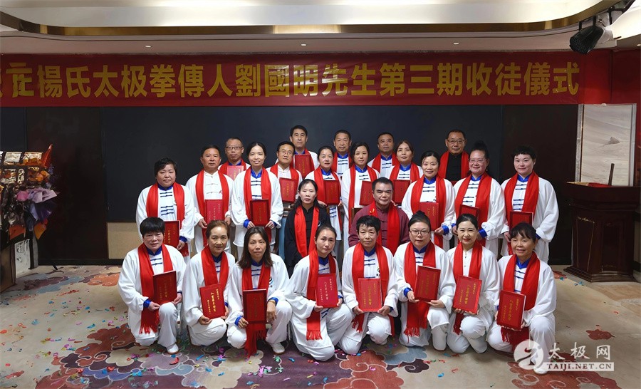 11月8日,杨氏太极拳第七代传人刘国明先生第三期收徒仪式在济南冶金宾馆隆重举行。刘国明先生的入室弟子、记名弟子及武术同仁百余人齐聚一堂,共同见证27位新弟子正式拜师、传承太极薪火的重要时刻。 济南市武术运动协会副主席张立斌代表协会到会祝贺,对刘国明先生为武术传承所做的贡献给予高度肯定。九十高龄的太极拳达人姜承德、山东省老年体协太极拳委员会副主任焦历柏、山东省直机关太极拳工委秘书长江霖、武术世家李中锦、泉城老年记者团团长张建军,以及海南俪宁投资有限公司张金树、孙艳等各界代表莅临现场,共贺收徒之喜。 仪式现场,27位入室弟子依次上前,向师父刘国明先生行拜师礼,表达传承太极技艺与精神的决心。这 27 位入室弟子分别是:孙兴峰、焦春道、谭建华、张广成、陈旭辉、王冠群、王宝章、王洁玉、葛林、王洛、王建波、孙卿言、秦红、孙慧、李琦、闫艳、高红、颜鲁鹤、徐永芹、张希华、黄银美、赵庆莲、卜晓晓、陈连芹、侯思华、刘秀兰、荣小伟。刘国明先生为新弟子颁发拜师证书,叮嘱众人要潜心研习、尊师重道,将杨氏太极拳的技艺与精神发扬光大。 刘国明,号明通,作为杨氏太极拳第七代传人,自幼便与书武结缘。他后拜郝明之先生为师,潜心研习杨式太极拳、刀、剑及太极推手等传统功夫,技艺日渐精湛。2014年6月17日,他成功考入中国武术协会段位制专家人才库,现已是中国武术七段,同时担任山东老年体协太极拳委员会副主任,亦是山东刘国明太极拳社李雅轩派系第四代传承人。2021年,他荣获中国传统武术贡献人物金鼎奖,这份荣耀是对他多年武术传承工作的高度认可。 多年来,刘国明先生积极响应和践行全民健身国家战略,全力支持并参与省市武协开展的群众性体育运动,致力于民族武术遗产的传承与弘扬。他的教学足迹遍布各市老年大学、机关企事业单位、社团及院校,采用线上线下相结合的方式常年传授太极拳。截至目前,参与培训学习的学员已超五万人,其中入室弟子达115人。他的优秀学员和弟子在国内外各类武术赛事中屡获佳绩,许多人已成为社区基层体育活动骨干,为全民健身运动的蓬勃发展注入了强劲动力。 除了在武术领域的深厚造诣,刘国明先生在书法艺术上也深耕不辍,收获颇丰。他八岁起便开始习书,六十余年来笔耕不辍,潜心钻研,书法技艺日臻成熟,成就斐然。如今,他的书法学生已达千余人,桃李满天下。2021年中央电视总台全国书法名家笔会期间,刘国明先生现场创作二十余幅书法作品,笔墨间尽显功力与韵味,赢得了在场各界人士的广泛赞誉与推崇。 武术与书法,一刚一柔,一武一文,在刘国明先生身上得到了完美融合。此次收徒仪式,既是传统武术传承的重要见证,也将激励更多人爱上中华优秀传统文化,让太极精神与翰墨书香代代相传。 责编:小七 |