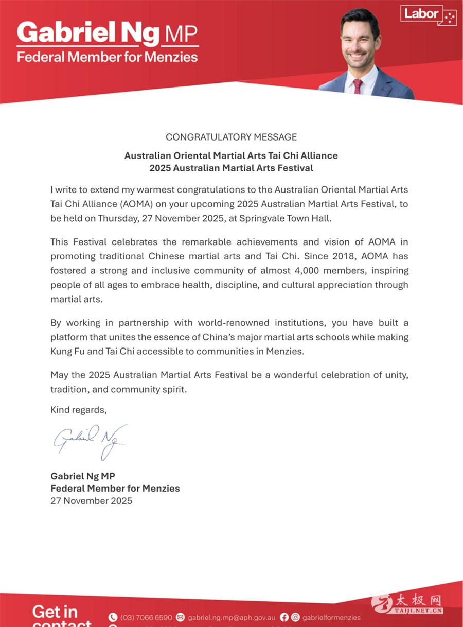 2025年11月27日,墨尔本Springvale Town Hall内鼓点铿锵,十面大鼓齐声擂响!AWCC澳东太极2025年澳大利亚武术节应声启幕,中华武术的刚健气魄跨越山海,瞬间点燃了南半球的文化热情。 AWCC武术太极创始人蒋慧女士和联盟会长袁芳女士共同主持此次武术节,两位深耕武术文化传播的领航者以专业风采串联全场。 官方加持,共话文化传承 本次武术节得到了澳大利亚各级政府机构的高度重视与鼎力支持。维州多元文化事务部长特派专员、Mulgrave选区州议员Eden Foster女士专程到场致贺,她特别肯定了澳洲武术文化中心及四家武术机构的工作,称赞其通过持续推广功夫和太极,既守护了民众健康、拉近了社群距离,更让中华武术文化在南半球落地生根。 Dandenong大丹德农市长Sophie Tan、Manninghan市长Jim Grivas也先后登台致辞,二人一致肯定了澳东太极联盟自2018年以来的武术推广成果。该联盟不仅已搭建起近4000名成员的多元武术社群,让不同年龄段民众在习武过程中收获健康体魄、自律品格与文化认同,还通过与国际知名武术机构的深度合作,将多门派武术精髓引入Manningham 地区,让更多当地民众有机会接触并了解功夫与太极。 联邦议员 Gabriel Ng 也专门发来贺信,称赞澳东太极联盟为中华文化海外传承树立了典范。 此外,作为澳东太极联盟合作方,武当山龙门国术院副院长、全真龙门派第二十六代传承人崇静师父也受邀出席活动。他在现场表示,澳东太极联盟八年来扎根墨尔本、坚持公益推广中华武术,对此他深感荣幸与自豪;同时,他还特别肯定了AWCC少儿武术班的开设,认为这一举措能为海外华裔下一代筑牢文化根基,具有重要的传承意义。 跨龄同台,演绎武道魅力 武术节现场最具感染力的一幕,当属 “耄耋老者与垂髫萌娃同场献艺”。年近九旬的王玲向现场观众分享,自己十分庆幸能加入澳东太极联盟,且已坚持习练陈式太极拳八年;10岁少年余添添则讲述了习武带来的蜕变——此前他每逢换季便容易生病,还长期受花粉症困扰,而习武之后不仅体魄日渐强健,精神状态也愈发饱满,这番真切分享引得现场观众频频鼓掌。 更有趣的是,四岁半的萌娃小亮亮因在博士山文化节积极推广武术,还获评“武坛萌娃销冠新星”,其与多元文化部专员的可爱对话,让现场氛围愈发轻松热烈。 为表彰武术传承路上的突出贡献者,现场还颁发了多个荣誉奖项:Lucy Luo获“恪尽职守武术教练”称号,王玲被授予 “澳东太极人瑞”证书,余添添拿下“少年武魂指挥官”荣誉。 两位市长和多元文化部长特派专员向2025年六位功夫武状元颁发奖牌和荣誉证书。 博士山太极队、联邦歌舞团、佳艺艺术团、澳大利亚锦涵舞蹈艺术学院、诺士华林高龄福利会获武术节优秀演出奖。 赛事纷呈,点燃全民参与热情 本届武术节设置了多维度赛事,五个校区的青少年武术班率先展开友谊比拼。Berwick校区的《乌龙散打组合》以精湛技法斩获全场喝彩;Kew校区萌娃们演绎的《武当基本拳第一套》,凭借整齐队形赢得满堂掌声……最终Glen Waverley校区的《武当基本拳第三套》因招式难度高、技术含量足,摘得集体赛最佳人气冠军,Doncaster校区、Burwood East校区分获亚季军。 趣味武术挑战赛则打破了年龄壁垒,成人组比拼一字劈腿,少儿组挑战扎马步,过关者可获20元奖学金代金券,坚持最久者得50元奖励币。当成人组选手纷纷败下阵来,小武士们却依旧稳扎马步,这场跨界PK将现场氛围推向高潮。 此外,11组亲子家庭同台竞演成为吸睛亮点,混血双胞胎、四口之家等组合默契十足……最终Eason Li母子组单刀项目夺冠,余添添与Vivienne的同龄组合、李纯一家四口分获亚季军,温馨的亲子互动让武术节兼具热血与温情。 文化共融,筑牢传承纽带 活动尾声,两位市长、多元文化部专员与四百名市民携手习练八段锦,官民同练的画面成为墨尔本街头一道独特的文化风景线。此外,博士山太极队、联邦歌舞团等五支华人艺术团体还带来了太极十三式、斗笠秀等特色展演,武当山崇静师父的高难度剑术、AWCC成人私教班的武当太和拳也让观众大饱眼福。 据了解,本届武术节由AWCC联合澳洲东武太极联盟、中国武当山龙门国术院、少林寺国际武术学院、东武太极研修总院四家国内外知名武术机构打造。澳洲新报特地派记者沙鸥前来全程采访报道,世界太极网、中国太极网、太极拳联盟等中澳主流媒体全程参与并鼎力支持。这场盛会不仅让中华武术的刚健风骨点亮了南半球,更以武术为纽带,实现了文化传承与多元社群的深度联结。 图文来源:AWCC澳东太极 本站责编:宋丽丹 |