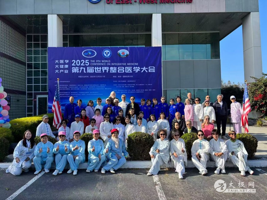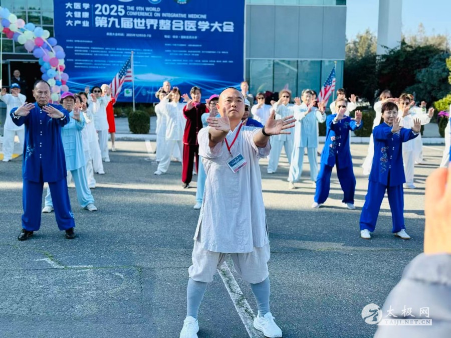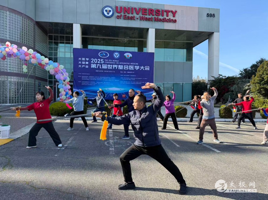 世界太极拳冠军、“太极王子”陈思坦老师教学并带领学员练习32式太极剑 (特邀记者钱承飞)12月5至7日,世界太极拳冠军陈思坦、太极科学联合会主席李书东、开放太极基金会创始人吴阿敏、美国少林文化中心执行主任延然等美国武术界知名人士在地处硅谷国际医药大学内举行的第九届世界整合医学大会上大展身手,开班讲学与演练,受到来自世界近80个国家和机构的顶尖医学专家学者与旧金山湾区武术爱好者与太极养生者欢迎,获益匪浅。大会开幕式上,在美妙的旋律之中,世界太极拳冠军陈思坦、太极科学联合会主席李书东等嘉宾带领百人演练24式太极拳,行云流水的动作,展示了美国社区太极文化的魅力。