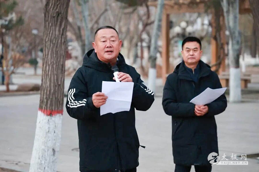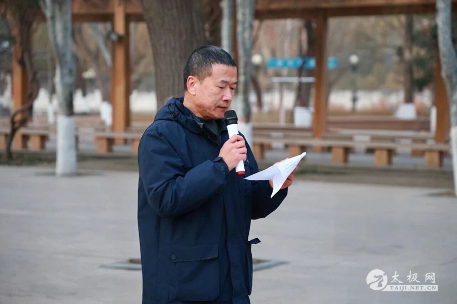 石家庄市武术协会主席、陈氏太极拳专业委员会总监杨合发在仪式最后发表热情讲话。他回顾了马虹先生的生平与太极拳传承历程,鼓励大家积极参与冬季练拳“挑战九九”活动,传承和弘扬“忠诚继承,热忱传播”的马虹精神。