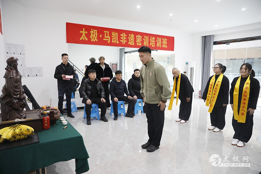 (太极网讯)2026年1月16日下午,陈氏太极拳第十三代传人马少凯收徒仪式在太极拳发源地河南温县举行。罗杰、张文倩、万丹丹等三位新弟子通过传统仪式正式拜师,成为陈氏太极拳传承脉络中的新生力量。仪式由太极网总编李超主持。 作为太极拳名家陈二虎的弟子,马少凯自幼研习太极拳技艺,多年来勤奋刻苦,深耕拳理拳法,不仅练就扎实功底,更始终坚守传承初心。现今,他通过网络进行线上直播教学,结合线下培训,走出了新生代太极拳传承人的传播推广之路。 此次收徒谨遵传统礼仪,处处彰显着对太极拳这一非遗文化传承的郑重之心,太极拳名家陈三虎及韩飞、陈大飞等嘉宾,马少凯同门师兄弟陈二伟、朱亚伦、马帅等受邀出席,共同见证这一传承时刻。 仪式伊始,师叔陈三虎带领马少凯向太极拳始祖及历代先师上香、祭酒、叩拜,以传统礼节告示此次收徒之举,表达接续传承太极文化的决心。 弟子们宣读拜师帖,字字恳切,满含对传承太极技艺的赤诚;随后依次上前,向马少凯老师递拜师帖,并恭敬奉上拜师茶。 马少凯老师对各位嘉宾及师兄弟见证仪式表示诚挚感谢。他坦言,收徒既是荣誉,更意味着责任重大。对新弟子,他提出两点殷切希望:一是,习练太极拳要有敬畏之心;二是,愿与各位弟子一同研习太极、共同进步。 新弟子代表罗杰在发言中动情表示:“能拜入马少凯老师门下,是我们莫大的荣幸。师父的言传身教,让我们深刻体会到太极文化的魅力与传承的意义。未来我们定当日日勤勉、刻苦习练,恪守门规、谨遵师训。” 真挚的话语中,尽显新一代传承人的决心与担当。 仪式最后,马少凯老师与三位新弟子及到场嘉宾共同合影留念,镜头定格下这一极具意义的传承瞬间。此次收徒仪式,不仅是一场传统礼仪的践行,更是陈氏太极拳非遗传承的生动注脚 —— 它让“师徒相授”的传统得以延续,也为太极文化注入了新的活力。 太极拳档案:马少凯,陈式太极拳第十三代传人,河南省一级社会指导员,中国武术六段,国家二级武术裁判,全国太极拳推手蝉联冠军,已帮助数以万计零基础学员在线轻松学太极。 本站责编:宋丽丹 |