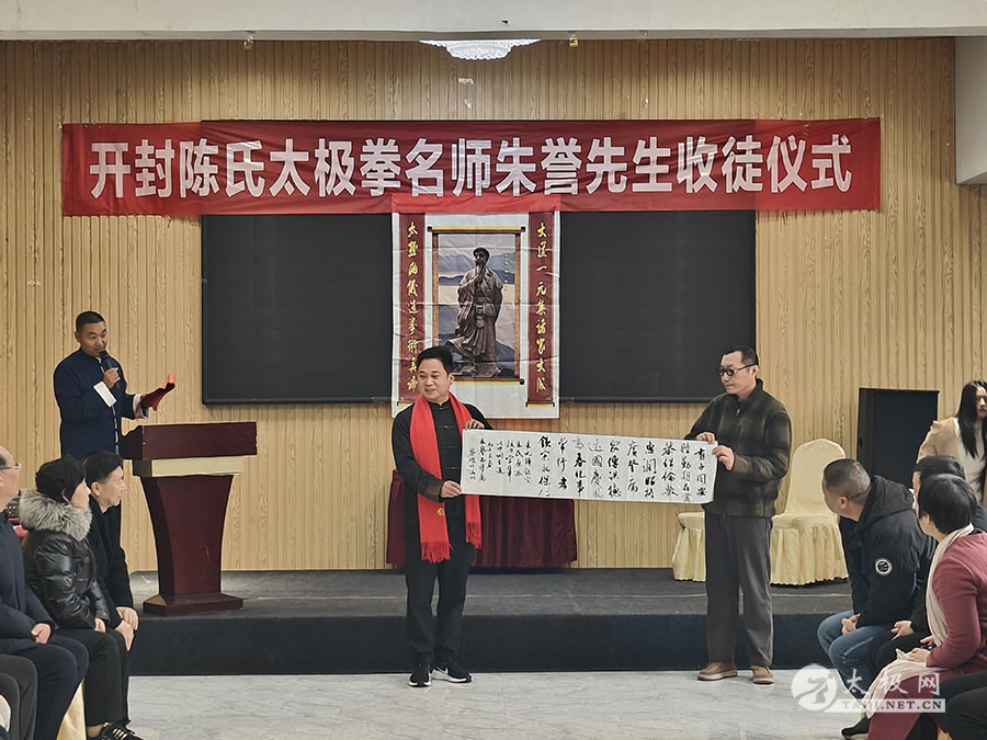 黄河岸边古韵浓,太极传承迎新丁。2026年2月9日,陈氏太极拳名师朱誉先生收徒仪式在古都开封举行。众多嘉宾及亲友共同见证白祥辰拜入朱誉门下,续写陈氏太极拳传承新篇。 河南省武协执委、开封市武协主席吕玉中,开封市武协副主席卜秋凤、王文超等嘉宾受邀出席仪式。 师者,传道授业解惑也。朱誉先生作为中国武术六段、国家一级社会体育指导员,深耕太极二十余载,桃李芬芳、誉满海内外。他曾荣膺 “最美太极人”“十大太极杰出青年” 等殊荣,不仅技艺精湛,更以弘扬中华传统文化为己任。 今日纳贤的新弟子白祥辰,系黄河水利职业技术大学学子。自2021年起跟随朱誉先生习拳,功底扎实、武德端正,先后获得十省武术邀请赛冠军、全国高校健身气功锦标赛第四名等多项荣誉。 仪式遵循古制,庄严肃穆。在悠扬的礼乐声中,朱誉先生率弟子陈征、焦奥博、陈治江,与准弟子白祥辰共同肃立,拜谒太极拳祖师。慎终追远,以此致敬先贤、传承文脉。 核心拜师环节中,白祥辰手捧师帖,郑重宣读。随后,他以虔诚姿态呈递拜师礼,向恩师朱誉及师母蔡真真女士三叩首,敬奉香茶。一杯清茶,敬的是师徒情谊;一柄宝剑,授的是使命担当。朱誉先生回赠师帖、传承证书、绶带与拳谱,这不仅是物件的交接,更是衣钵的传承与信任的赋予。白祥辰正式成为陈氏太极拳王西安拳法一脉传人,开启武学新征程。 师爷桑守惠先生远寄贺电,殷殷嘱托。贺电中勉励朱誉 “以德立身,以艺服人”;期许新徒“练拳先修德,学艺贵有恒”,字字铿锵,寄托了老一辈传承人对薪火相传的无限期盼。 仪式现场,温情与力量并存。朱誉夫妇对新徒的训诫,语重心长;吕玉中、大师兄陈征、引荐人吴继红及白祥辰父亲的致辞,拳拳在念。贾黎鹏、李昆展等嘉宾献上贺礼,声声祝福,共筑太极传承的坚实力量。 礼成之后,陈征演绎陈氏太极拳老架一路,行云流水;焦奥博展示陈氏太极剑,刚柔并济;白祥辰表演42式太极拳,舒展从容;李子悦演练太极刀,虎虎生威。众人刚柔并济的展示,赢得现场阵阵喝彩。 此次收徒仪式,不仅延续了“师徒相授”的武学传统,更推动中华武术瑰宝在青年一代中传承,为太极文化的弘扬与发展注入了新的活力。 本站责编:宋丽丹 |