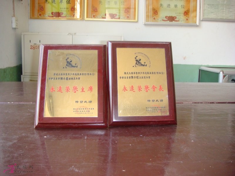 “情细故里,弘扬太极”及太极证书专柜 “武林一家”及陈小兴被聘任客座教授等六幅荣誉陈小旺和陈小星被聘永久名誉会长和主席陈小星被聘陈式太极香港总会永久名誉会长