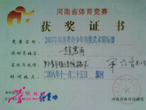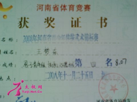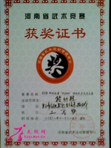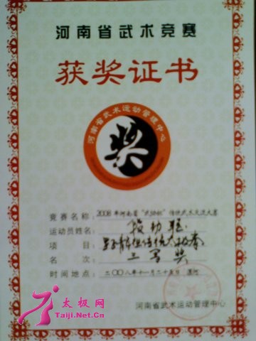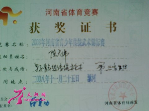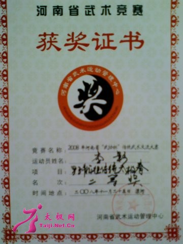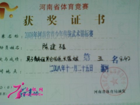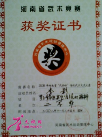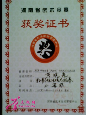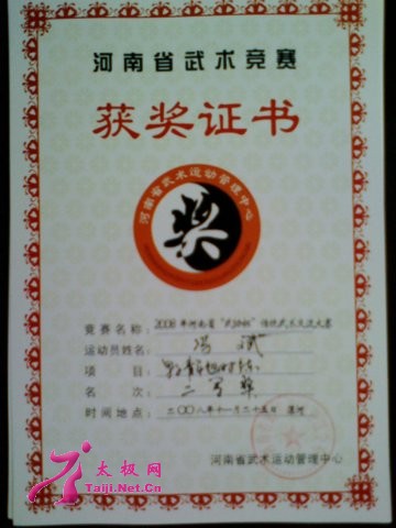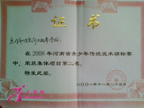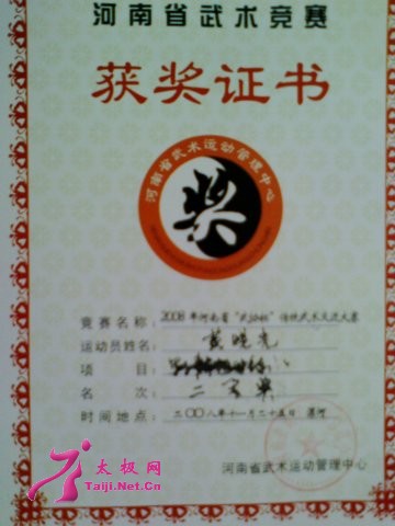 中国陈家沟太极拳学校参加了一个集体项目,并荣获该集体项目第二名”。