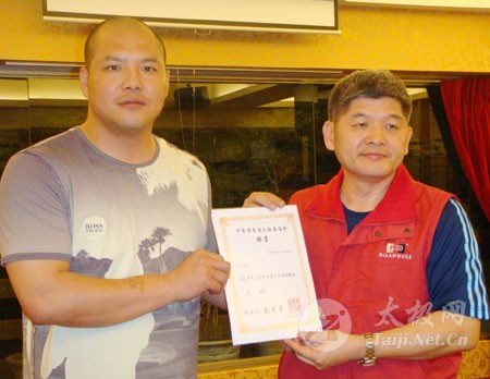 | 11月9日--16日,以焦作市委副书记、市长孙立坤为团长的焦作市旅游推介考察团一行40人赴台开展为期8 天的“太极故里·山水焦作”宣传推介活动。温县陈家沟的太极名师王战军、陈春爱随团前往。 “太极故里·山水焦作”走进宝岛活动是河南省焦作市首次高规格赴台交流活动,也是焦作市贯彻“旅游立市”战略、积极拓展客源市场、进一步提升旅游档次,扩大开放、促进发展的重要举措。在台活动期间,焦作市分别在台北、台中举行了两场旅游说明会,重点推介焦作旅游,专题推介云台山景区,现场表演了太极拳,与岛内旅游业界进行广泛交流,让更多台湾民众了解焦作,了解云台山,了解太极拳,吸引更多的台湾同胞到焦作旅游,进一步推动焦台两地旅游业界加强交流,实现合作共赢。 陈家沟太极拳师在台湾受到热情的招待。中华陈家沟太极拳协会理事长刘文宗、台南中华陈家沟太极拳协会以及王战军先生的台湾入室弟子简羽宏对师傅和陈春爱老师的到来表示热烈的欢迎。 在台期间,中华陈家沟太极拳协会和台南中华陈家沟太极拳协会分别聘请王战军老师为本会名誉顾问,并向陈家沟武术院赠送“太极之光”、“校誉昌隆”的匾额。王战军老师回赠自己的新著作《陈式太极拳实战技击》。 王战军(中)、陈春爱(右二)、简羽宏(左二)