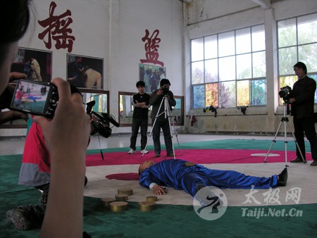 4月27日,北京电视台《四海漫游》栏目组在太极拳发源地陈家沟拍片,陈式太极拳代表人物王西安先生和武林大会总冠军王战军先生以及陈家沟武术院部分师生应邀参加了拍摄工作。摄制组在陈家沟东沟、太极苑、陈家沟武术院等地方进行了太极拳、械、散手的取材,在太极祖祠对王西安老师进行专题采访。 《四海漫游》是北京电视台唯一一档日播专业旅游节目,此栏目立足于北京,放眼于全世界,还旅游以天然面目,给人以回归自然之感,用全新的概念和独特的视角诠释着旅游打动人心的理由。这次的专题片主要是介绍焦作山水、太极拳和温县特产“四大怀药”,将在北京卫视和各地开往焦作的旅游专列上播放。 在陈家沟东沟拍片 [page] 王西安老师指导学生练拳 王战军老师太极内功----肚皮弹重物 王战军老师太极散手 [page]