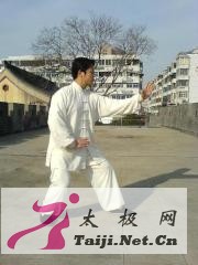 形意拳既为内家拳,练形意拳就要会发内劲儿。欲发内劲儿则必先练内功。练内功的主要方式是练气。练气时必须符合人的生理自然。拳经云: “内功之传,脉络甚真。不知脉络,勉强行之,则无益而有损。前任后督, 气行滚滚,井,池双穴,发劲循循。千变万化,不离乎本。得其奥妙,方叹无艰。电尾升气,丹田炼神, 气下于海,光聚天心。”脉络为人体内真气运行的轨道,练气而不懂脉络,犹如兴修水利而不明白江河分布,水势之大小,盲目行之,没有不出毛病的。人身脉络主要的有十二正经,奇经八脉,其中最根本的则是前任后督两脉。任脉在前,起于承浆穴沿喉头,胸骨柄、剑突、直下至阴前高骨。督脉在后,起于尻尾(尾巴骨),土至命门(与肚脐,前后相对),再上至夹脊(背后两片扇子骨的正中)过大椎、泥丸(即百会穴)下印堂至人中而止。小腹正中为气海,武术家也叫它丹田,它既是人体的中心,又是人体经络场的重要场源,气聚于气海之后,就会沿经络运行。额上正中谓之天心。气自龟尾上升经百会沿任脉而下聚于丹田,丹田气足则化而为神,自天心出,二目即芒可射人。崂山道士匡常修有云, “神者身之本,气者神之主”即指此也。肩头正中为肩井穴,肘头分中为曲池穴,此二者为周身发劲之所。散打中之所以有“点肩井”和“打曲池”等手法,即以制止对方之发力也。既明脉络之后,还须讲究姿势,此即气功中所谓“调身’是也。正确的姿势才能有助于内气按正确的轨道运行。.对于姿势,拳经中有明确规定:“头正而起,背圆而正,肩平而顺,胸出而闭。足竖而稳,膝曲而伸,档深而藏,胁开而张。”形意拳内功虽有坐功,站功,行功之分,但仍以站功,行功为主。上边一段话主要是针对站功讲的。可是无论练哪种功,在姿势上都应正头起项,壮面凝神,肩松胸出背圆,前身微微有收敛之形,此乃练内功之真正诀窍。 形意拳内功的呼吸法,即“调息”,是用的逆腹式呼吸,也叫“后天法”。气路是走的“混元气”而不是“经络气”。即并不按十二正经的顺序行气。这在拳经上也有明确说明: “先吸后呼,一入一出‘先提后下,一升一伏。内收丹田,气之归宿。吸入呼出, 勿使有声。”又曰:“下收谷道,上提玉楼,或立或坐,吸气于喉,以意送下,断至底收。升有升路,胁骨齐举,降有降所,气吞俞口。”所谓提,即是引气上升,所谓下,即是导气下降。下降之气必会渐缩渐小,伏于丹田之内。耳后高骨,拳家叫作玉楼,并不是针灸穴位;俞口位置在背后上部自大椎到夹脊这一段,拳家统称之曰俞口,非穴位也现在先将坐功和站功(即站桩)的姿势与行气分别介绍于下练坐功时,可以盘膝静坐于榻上,闭目绀口,舌顶上颚,两手内外劳宫穴相对,置于小腹上。也可以坐在板凳上,以两脚踏地两大腿能放平为宜。两手可分别放在两大腿上,掌心朝下。仍要闭目绀口, 舌顶上颚。调息时,一出—入,皆从鼻孔,要均匀细长,好似肺部不动只用肚脐呼吸一般。气定后,即吸气一口,以意领之自涌泉沿两大腿而上升入丹田,再上升入两胁。胁骨即上举,将气送达耳后高骨——即上提玉楼是也。再上达于百会。降气时,随呼气即以意领之,从百会降至印堂,经人中入口内,再由舌而至喉。故必以舌顶上颚去接气。然后自喉通至后背,即所谓“气吞俞口”是也。自后背直穿出前心,沿任脉降至丹田。丹田气足,则向下经会阴过尾闾,故必须内收谷道以通气路,尾骨还要向前向上兜转,叫作“提肛缩肾”,则气可直上过命门,夹脊,玉枕,而达泥丸(即百会,道家叫泥丸宫)。玉枕穴在脑后高骨稍后处,也是内气不易通过之处,要以目内视头顶,慢慢引导之。如此循环,周流不息,这就是小周天法。拳经上对这一段行气之法有如下的叙述:“紧攫谷道内中提,尾间一起绉节骨,玉枕难过目视鼎,来到丹田存消息。悉心搭通鹊桥路,十二时中降地池。镇住心猿拴意马,要立丹田海底基。一时快乐无穷尽,返本还元心自己。久练自成全刚体,百病皆除如童予。”收功时,将气收于丹田,觉气渐收渐小,如龙蛰虎伏而藏于斯。然后以意送下,直至涌泉。收住。 [page]  形意拳内功之站功,也叫桩功。一般人常练的有“三体式”(又名三才式)和“浑元桩” (又名乾坤桩)两种;前者适用于青少年,后者适用于老年人。练三体式,姿势如同定步劈拳。开始时,两足跟相并,两足尖外开45度一60度左右,两腿微屈,膝盖与足尖上下相对,两手握拳,紧靠大腿外侧,拳眼向内。然后右拳上提,边提小臂边外旋,紧贴着右肋由前向上钻出,吸气随之上升。吸气尽时,拳高与鼻平,拳心向面部.呼气时,左拳上提,小臂外旋,由左肋旁擦身向前自右拳劈出,右拳同时变阳掌下按置于右日月穴旁(右软肋下高与脐平)。与此同时,左足向前迈出一步,与右足相距约两脚半之远。前腿斜直,膝微弯,膝盖在足跟上与足尖对准。后腿微屈,膝盖在足尖正上方。尾骨与后足跟上下相对。形式上要作到外三合。全身重量分在两腿之上,前三后七。随即自大椎开始,将脊椎骨逐节向下依次松开,尾骨向前向上兜翻,内中意,气,力三合,思想高度集中,将神凝聚于“天心”,目视前方,定若钟鼎。拳经云:“目视鼎,弃视脐,处处行迟不可移,彻开二六连环锁,一点灵光吊在眉。”即指此也。(颈椎7节,胸椎12节,腰椎5节,共24节,道家叫24楼,也叫12对连环锁。)站桩虽系静功,且不可呆滞。要气势腾挪,伏如横弩,动若发机。以意领气随自己的意志活动,吸上呼下