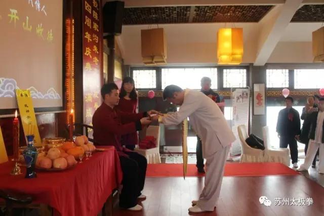 拜师仪式上,朱峰老师首先向太极拳历代宗师上香、敬酒、行叩拜礼,在众嘉宾的见证下,罗嘉华、陈志明、陈晓明、陆志伟、刘能武、于红梅、杜建克、顾 锋、陈一飞、方结兵、穆 伟、吴 晖、张会周、华子昊等按照传统的拜师礼仪,宣读拜师帖、递交拜师帖等礼节一一礼成,正式加入到太极拳传承的队伍中来。