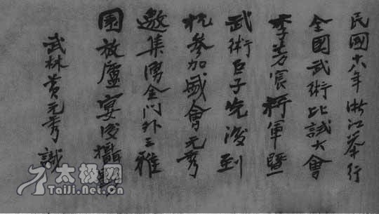 北京杨家派,即世称“杨无敌”的杨露禅先生传,有杨班侯、杨健侯、杨梦祥、杨澄甫、许禹生、吴鉴泉等等,所习亦各不同,大致分为大架子与小架子两种。余尝以此事问之澄甫先生.答日:“先求开展,后求紧凑。初习者宜大架子,能使筋骨舒适,血气充行,搞定方位,表示功夫。到运用时,要快要便,宜小架子也。家先(提供者接:指杨少侯)现在练的,都是打人法则。”其意若日,倘若在平稳静水之中,尚不能游泳,欲涉惊涛骇浪之江海可乎?有如习骑马,粗浅之慢步未有把握,而欲跳跃障碍物可乎?古人所谓登高必自卑,行远必自近,实为至理名言。总之,打人之事,非日常所需,而健康实为须臾不可相离。试问吾辈,何者为要?本人所说,皆属平庸之谈,卑无高论,倘读者能循次而进,日计不足,月计有余,于健康上不无裨益。至于惊奇骇俗之谈,好高骛远之淡,是非鄙人所知矣。近日一般学者(非徒弟之列,指普通学者),往往求速求快,最好将太极拳五六步功夫、数十年学力,在一两个月内学成。故近年学太极拳者,由北而南,黄河流域,长江流域,浸至于珠江流域,不下数十万人。即以浙江省而论.十几年来,亦有数千人。至今能稍有成就者,寥如晨星。即以普通能在推手上.将棚、捋、挤、按四字分得清楚者,亦不多见。其原因何在耶?一在求速,二在无恒,好高骛远者,决难成就。总之,吾人先从基础上练起,决无错误。第一求 气血充足,然后能精神饱满,身体强健,务使架势正确,举动合法,使其有利而无弊循序而渐进,不在思想之急迫,而在学力之勤惰与方法稳妥否也.、杨梦祥(编者:即杨少侯)先生拳架小而刚,动作快而沉,常使冷劲、断劲,偶一交手,肌肤辄痛,所指示者,类多应用方式,其功夫确得乃祖真传,惜非常人所能学,文弱者不堪承教,无根底者.无从领悟。且性情刚烈,颇有其伯父杨班侯之遗风,同志中每兴难学之慨.故其名虽盛,其徒不多。澄甫先生(即梦祥先生之胞弟)架子开展而柔顺,手法绵软而沉重,所谓丝绵裹铁弹,柔中有刚,好太极拳者均欢迎之。但仍不愿与其推手者,每一发劲,辄被扑跌寻丈以外,为弟子者仍难领受其内劲滋味。余常问澄甫先生,教人何必如此。先生日,不如此,无以示其劲,若随随便便,模模糊糊,尔等何必来,岂不徒耗光阴,虚靡金钱耶?民国十八年秋(1929年),杨澄甫先生为浙江国术馆教务长,余常与之推手。某次比演双按,杨老师顺势一扑,其手指并未沾着余之衣襟,而余胸中隐隐作痛移时。 照常理而论,手臂尚未接着,何来疼痛之感,殆所谓拳风者耶?余询之杨老师,杨日:内劲耳,气耳。余至今仍不解其所以然也。据田绍先先生f即田兆麟)说,当年学习时,以拳劲击杨健侯老先生之腹,老先生腹一鼓,田已跌出庭外。而老先生仍安坐椅上,手持炯筒,呼吸如常,若不知有所举动者。后与澄甫比试被击于右肋而痛于左肋者月余。凡此种种,皆为技术上不可思议之事也。然考绍先之功夫,其手法之妙、出劲之沉,实非普通太极拳师所能望其项背。余非为其宣传。凡习太极拳有历史者,莫不知田绍先为太极拳名家也。他和武汇川(1890~1936年)、褚桂亭(1892-1977年)、陈微明(1882~1958年)、董英杰(1897-1961年)诸君,同为澄甫先生入室弟子,行道于南北者亦有年,声誉卓著,颇为社会上人士所钦仰而手法各有不同理论亦各有其是。其他私淑者可知矣.,以上所说拳法,各有特长,各尽其妙,不能从同.亦不能强同,其中并兀轩轾可分,在学者更不得是此而非彼。要知此种艺术,能立千年而不废,博得一般人上之信仰.其中确有不可磨灭之精义,令人莫测 之妙用存焉。 据以上情况,无论系何师,一家所传,一人所传,其动作多少,皆不能同,亦不必尽同。不仅太极拳如此.即弹腿一门有练十路者、有练十二路者。此为回教门之艺,尚且有两利一之分。又若少林门各拳,有岳家手法,有宋太祖拳,此传彼授,各是其是,各非其非,惟情论总须一致,设或理论不同,则其宗派显然有别,不得谓为同门矣。以此质之海内专家以为如何? 练拳一:练太极拳全套架势,每日学一二势,继续不断,以常人资质,约月可以学全。须经两月之改正。再加月之苦练,共计四个月,其势样姿势,即离开师傅一年,可以不致变换。若仅一月光阴,粗知大略,不经改正.则不得谓之学会。因稍有间断,其方向与动作早已走变矣。但每日仍须复习,不可问断,若每日两遍,能使纯熟,每日三遍,能增功夫,每日一遍,不过不忘而已。 练拳二:学习拳架,自第一动起,至末尾止,谓之一套。其中名目百余,势势皆要紧密周到,而且要轻灵沉着,无有一势可以随便,无有一势可以丢顶。丢者离也,顶者僵也。四肢百骸从轻,从绵,从柔,轻而不可忽,绵而不可断,柔而不可疏若注意而起僵劲,此所谓顶,便离太极门径矣,初学者切宜注意之。 练拳三:练灰极拳趟,其经过时间是愈长愈妙,有练一遍需40分钟以外者。练慢之后,亦需练快,有以几分钟内练完也有更快练法的。无论慢快,总以均匀为贵。谱日:“无使有缺陷处,毋使有凹凸处,毋使有断续处。”初学之人练一遍,最少八至十分钟。如经过五六年后.功夫略深,即可练快,惟须势势到家,不可因快而草率。至于架势分三种:初练宜高架子,继则四平架子(眼平、手平、腿平、裆平),再则功夫日深,逐渐近于低架子矣。由高而平而低,皆从功夫上来,不可强求,否则弊病百出,无益于学者。 练拳四:练架子外面注意动作务使均匀,谱日:“由脚而腿而腰总须完整一气。”内部呼吸亦要