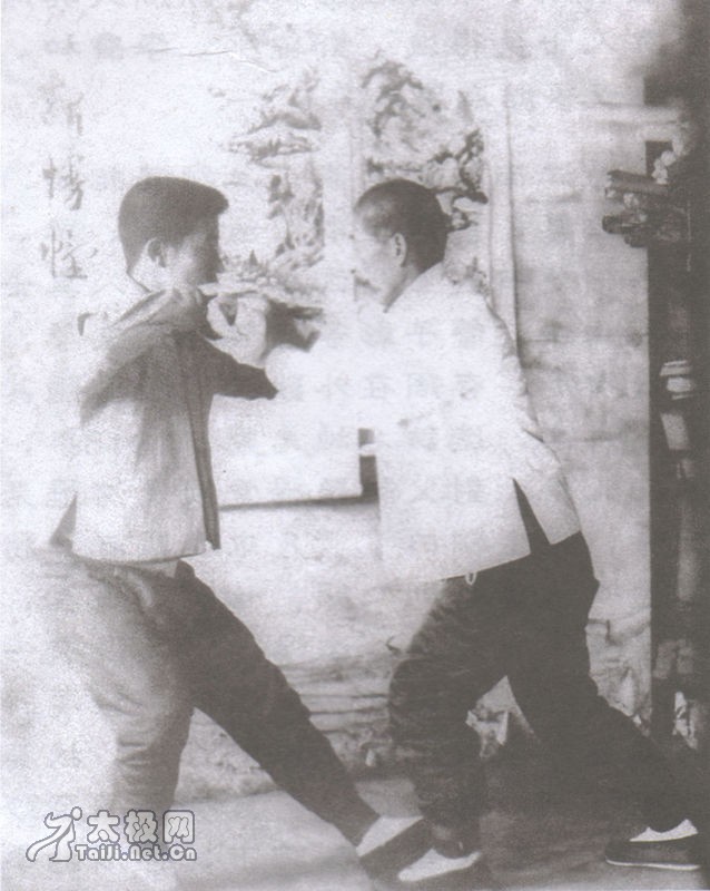l 孙老命曹晏海演技,曹示以通背、劈挂、滑拳等。观后,孙老曰:"汝之技,无需再习形意、八卦、太极诸艺,只需换一付腿"。原来,曹上肢已练得颇有功夫,只因步拙腿僵,故在实战中难合其用。于是,孙老未授曹任何拳架,只授曹"飞九宫"之术。"飞九宫"者,乃地插九轩,人在其中以所善诸艺往来穿梭(《拳意述真》中论之甚详)。数月,经孙老悉心教授,曹之步法由拙渐活。于是,孙老又授曹散腿之用。所授散腿皆由八卦暗腿演化而出,因曹已有"飞九宫"之基础,故能得此散腿之用。孙老之用腿与众不同,教授时,孙老将双手背于身后,对曹说:"我不用手,只用腿,你随意攻守,注意,三秒之内我必起腿。"言罢,孙老潜步走近,曹刚要出拳或出脚,孙老的脚已抵在曹的心窝处。如此反复多次,总是如此。曹总是夺不着先机,又挡不住、化不开、躲不及,而孙老的腿法很简单,就是一抬腿而已。 l 高水平太极推手可形容为:一触即发.在无形中化解不存发意与一触即发是一回事.是推手中的两种表达方式.并不相互矛盾.在我理解是两种方式都在棚劲的基础上做出来的.没有棚劲是不行的.这里面不能有”力”生存的,必须是劲---即内劲,内劲运用得好,就能有以上两种推手效果.推手是推内劲也.内劲由何处而来呢?本人认为劲起于骨缝.陈鑫著述中也谈到这个问题,但关健是劲如何以骨缝起劲,骨缝起劲在推手中如何运用,这才是根本问题,解决这个问题,推手的问题也就可以说入门有望了,不然永远是门外汉.魏树人著<<杨式太极述真>>中讲的太极揉手中,写到了一点点有关内容,不注意的话,可能被忽略不看的.可以说,不推手的太极是太极操而不是太极拳,尽管很多人不愿承认,事实如此,拳包括四方面,即:观赏表演;养生健体;技击防卫;治病疗伤.后二方面是拳的高级层次.推手是技击防卫的训练,推手训练到位,便是技击了.