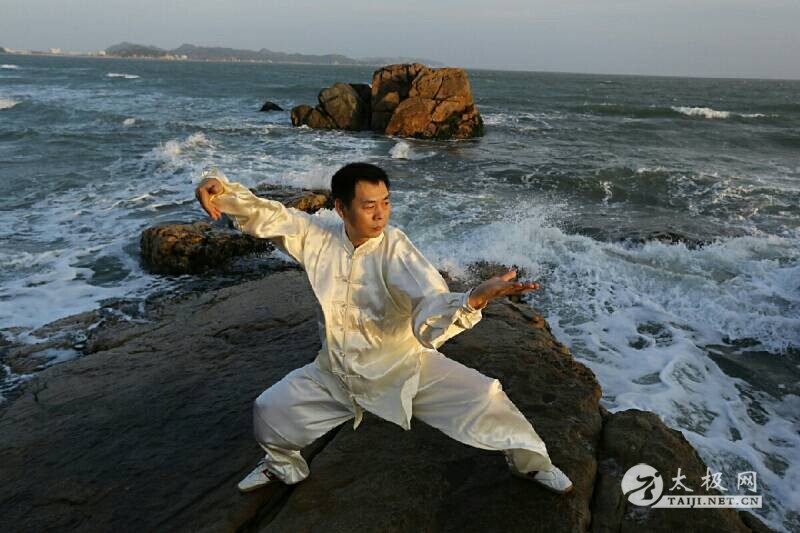 太极拳技水平达相当高程度后,能做到腰转(动)带动、牵动、引动、拔动脚转(动)、手转(动)。在太极拳势运动中,腰与肢体其他部位的关系是主动与随动的关系。诚如拳论所说“车轮两命门,一纛摇又转”,“腰如车轴”是也。 太极拳势运动中,腰主动与肢体其他部位随动勾画着太极拳的三个“座标”:太极拳是练腰的拳,无腰不太极:太极拳是练圆的拳,无圆不太极;太极拳是练“周身一家”的拳,无“周身一家”不太极。 1、太极拳是练腰的拳 太极拳运动中,腰的动态处于极其特殊地位,诚如《永年太极拳志》(2006年版第95页)所言:“腰是全身之轴心和重心,也是丹田之所在。‘命意源头在腰隙’只有以腰为轴,才能带动全身构成一个整体,节节贯穿,灵活稳健,力由脊发,步随身换……太极拳的动作实际上不是四肢的动作,而是腰的动作”。腰是太极拳势上下体转动的关健,腰动对全身动作的变化、协调乃至重心的稳定,以及推动劲力到达肢体各部位都起着关键作用。因此,太极拳是练腰的拳,腰主动与肢体其他部位随动,贯穿于太极拳势运动全过程。 拳论要求“刻刻留心在腰间”,原因在于“腰隙”为命意源、为气机开关、为旋转枢纽、为虚实变化根本、为一身之主宰。腰空松圆活,丹田气动方能“腹内松静气腾然”枢纽“活似车轮”,方能虚实变化莫测,“屈伸开合任自由”;“腰为主宰”,腰动得当,肢体其他部位方能随动有序,节节贯穿……腰主形为轴、气主动为旗、心(神)主行为令,形正则气顺,气顺则神(心)宁,故腰形、气旗、心(神)令,实为太极拳(动)气功调身(姿)、调息(气)、调心(神)之三调,互为其根其用而统一,缺一不可。 太极拳注重练腰,当有另一层含意.人的肝肾脏器位于腰部腹腔,祖国医学理论认为“腰为肾之府,肝为筋之府:肾主骨、藏精,为男子先天:肝主筋、藏血,为女子先天;肝肾同源于命门”,故太极拳独具特色的运动方式,有固肝肾、健筋骨,颐养先天、延年益寿,向生命极限挑战的意愿和功效。 拳界向有“太极腰”、“无腰不太极”的说词,《心会论》更强调“腰脊为第一之主宰”。愚意以为:太极拳的内劲运转要通过腰脊来带动四肢运转,因此拳势须松腰竖脊,脊不直,则身躯歪邪,腰不松,则整体不能灵活运转;因此拳势须松腰沉胯,脊椎节节松开,气自沉(下、归)丹田,力透两足,下盘稳固;松腰竖脊沉胯,百会穴上领,尾间正中下垂,脊椎骨拔开、椎管顺直自然,丹田之气自能贴背运行,通过腰脊产生内劲,上贯头顶,达于手足,成为上下一体,手足的动作与腰劲相系,使腰成为整体活动的轴心。拳谚“上下一条线”,松腰竖脊沉胯之意,只有以“腰为轴”,以“腰隙(眼、胯)为轮”来带动肢体其他部位,按拳理要求活泼运转,方可“全凭两手转”,达到“心令气旗使,自然随我便”、“合则发放去,不必凌霄箭”的境界。 “掌腕肘和肩,背腰胯膝脚,上下九节劲,节节腰中发”。愚意以为,太极拳盘架时腰主动与肢体其他部位随动的水平和质量,特别是推手、实战时我方肢体的主动随动,带动、牵动、引动、拔动对方肢体,使其失重(控)、落空、跌出的水平和质量,是审视、评判太极拳技水平、质量的重要依据。 2、太极拳是练圆的拳 太极拳运动是“太极(阴阳)图”的模拟再现,太极图(圆)的几何图形无始无端,周而复始,循环往复,拳势行云流水,绵润悠长如“长江大河,滔滔不绝也。”因此,太极拳是练圆的拳,无圆不太极。 “太极不动手,圆用腰来走”,昔年杨少侯宗师曾对吾师张虎臣(1898一1979)先生言,“太极拳势无处不是圆,无圆不太极。圆从何来,皆腰所为也。腰为轴,轴转带动肢体圆运。轴为旋转之蜡烛,手足为旋转之灯罩,以腰脊为轴心,画圆裹为灯笼也。灯笼愈小愈妙,先求开展,后求紧凑也。”少侯还将太极拳势的圆喻作时钟,说“习长手者,为钟之长针走大圆,习短手者,则为针之轴,无圆之形式,而有圆之妙用。”太极拳势这种腰主动、手足随动将身体裹成“灯笼”的运动形式,在少侯传与张虎臣的太极小架——太极家手(练架)、太极小式(用架)套路中,形正势圆表现得淋漓尽致:松腰竖脊沉胯,百会与会阴连线与地面相垂,稳如“坐在(尾闾)烛台上的蜡烛”正中安舒,即使海底针、斜飞式,单鞭下式等动作也不须低头弯腰俯身,以保证身体中线的正中不偏:腰主动四肢随动“裹成灯笼”,出手须三尖(鼻尖、指尖、足尖)相照、同在一个圆上,手足尖连线与地面相垂直,外圆距胸腹(视身材大小)一尺左右,圆的尺度随功夫和用意而变化:圆大至无限、圆小至星点,妙在小圈可产生大圈、快圈的向心力、离,心力功效:妙在求速度时圆化为点,距离短,应力集中,迅捷无比;妙在圆满气足、柔滑坚韧,即可卸力、吸力,又能张力反弹作用于反方向力,使敌力或找不到着力点无所适从,或沿着圆的切线方向飞出,或被吸力所吞化、张力反向弹出…… 太极拳势腰主动是轴心内圆的暗动(转)、微动(转)、小动(转),带动、牵动、引动、拔动肢体其他部位随动,是轴心外圆的明动(转)、显动(转)、大动(转)——这是对盘架子而言;若是推手、实战,则我方主动随动为轴心,内圈(圆)愈小愈隐愈好,敌方为外圆、大圆,作用于敌方的向心力、离心力愈大愈烈愈速愈妙……概而言之,腰劲越圆,周身之劲越活、越轻灵奇巧,太极拳功夫愈显出神入化。 太极拳势往复折叠,进退转换,“腰隙”遂意(拧成)“麻花”般状态的主
