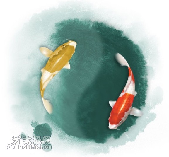 1.阴阳鱼图之形成:如推手中,对方与我双搭手,双方右手相接,对方左手搭我右肩,我左手搭对方的右肩。这样双方的的肩背与左手相连形成了一个圆,双方右手相连就成了圆中的S线,即中极之玄。双方双手相合,相抱不离,合二为一,形成了一个“阴阳鱼”的外形。双方此时不丢不顶,太极鱼处于无极状。