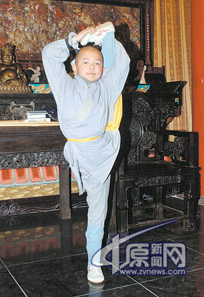 释小广 少林童星初长成 3月22日,8岁小和尚释小广成为世界各大媒体关注的焦点。释小广的“童子拜佛”折服了造访少林的普京总统。普京迅速把他抱过来,扛在肩上。这幅精彩的图片成为世界各大媒体报道的热点。 其实,释小广早就是一个名副其实的“武打小明星”。2003年以来,释小广先后到美国、巴西等近十个国家演出……他机灵的模样和一身真功夫倾倒了大批的观众。 昨日下午6时,刚练完功的他,怯生生地走进方丈室。锃亮的光头,俊秀的面孔,一双乌溜溜的眼睛透着聪颖之气。他一开口就让你刮目相看:“我觉得兴趣是我习武取得进步的动力。” 释小广来自长葛市的一个农民家庭,在师傅释延军的严格调教下,小广的武功进展神速,短期内便学会了童子拜佛。别看小广小小年纪,训练时一点也不马虎,出去演出一点也不怯场,像个“小大人”。今年6月份左右,小广还将随众多高僧到俄罗斯表演。 在练功的同时,小广仍然不忘学习,他把每天需要学习的内容安排得井井有条,并制成表格贴在墙上激励自己。