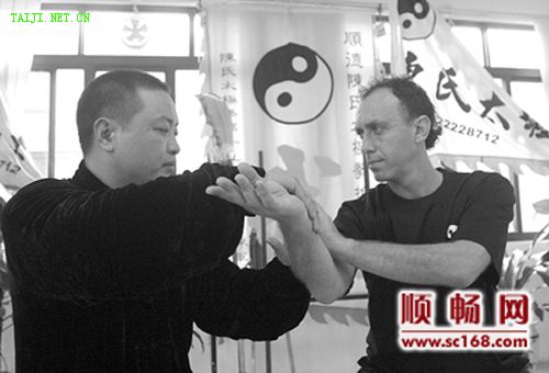 记者(以下简称“记”):Gil cohen,你是如何接触到太极这门功夫的? Gil cohen:在以色列我认识一位日本朋友,他就会太极拳。见他练过几次,我就来了兴趣,便缠着学。可惜,他的水平也不高。直到有一天,他指着地图说,太极的起源在中国,真功夫在河南陈家沟。那时我就下定决心一定要去中国学拳。 记:你还记得第一次来中国学艺时的场景吗? Gil cohen:当然。那时我25岁,刚服完兵役,见有空闲,便直接去了中国。当时对你们国家一点都不了解,直接背上包就过来了。 记:就这样跑过来,不怕家人担心吗? Gil cohen:当时我还没娶老婆,没人管我。(大笑)不过,语言不通给我带来了很大的麻烦,几乎无法和人交流,只能边走边找懂英文的人问。当时的交通状况可没现在这么好,那次我先后途经香港、北京、郑州、温县,最后才找到陈家沟。飞机、火车、汽车,什么样的交通工具都坐过。最后甚至步行了8公里才到陈家沟。 记:步行8公里? Gil cohen:好像当时没有车到那里,只好走过去。不过,也许正是这种诚心感动了陈师傅,他才收我做徒弟。(笑)