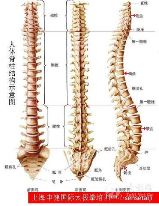陈式太极拳是国家非物质文化遗产,是以“太极”“阴阳”理念为核心思想,集强身健体、修心养性、技击对抗等功能为一体的运动。数百年来,它使子孙强壮,身心健康,让整个民族体悟到了它的博大精深。今天,带着中华民族的骄傲和自豪,太极拳已经走出了国门,深受到国内外亿万朋友的喜爱, 成为中西医认可的最佳保健术。然而任何运动只要不科学练习都会有损伤的风险,太极拳也不例外。腰部发劲受伤是陈式太极拳习练者常见的运动损伤,与陈式太极拳刚柔相济拧腰发力的运动特点有一定的关系,更与训练不科学和发力姿势错误有直接关联。笔者在多年的习练和教授陈式太极拳过程中,针对这一现象总结出来的一些经验和见解,拿出来与大家共同讨论,以求共同进步。 让我们先了解脊柱的结构(附图1):人的脊柱由7块颈椎,12块胸椎,5块腰椎及骶尾椎组成。成年人的脊柱,从侧面看,从上而下呈“s”形的弯曲状态,具有四个生理弯曲,分别为颈弯前凸,胸弯后凸,腰弯前凸和骶弯后凸。腰部是脊柱运动中较灵活的部位之一,可作前屈约45°、后伸约30°、侧弯约30°、左右旋转分别约45°(某些运动员可略大于45°)的活动,还要负担一定的体重,因此,腰部软组织所承受的张力较大,损伤的机会多。腰部在太极拳中被称之为“中节”,它是联系上下肢体的枢纽。在拳法中,只有“中节”练得迅敏、协调、有力,才能使“根节”(指下肢)的起动力有效地传递到“梢节”(拳、足部)。陈式太极拳的发劲动作主要靠“中节”腰的左右旋转发力,因此腰部多数损伤是由腰旋转时姿势的不正确导致的。 造成腰部受伤的原因主要有以下几点: 1. 热身不充分可能造成损伤 科学实践证明如果不做热身运动,骤然开始运动容易造成多种运动损伤,有些人从来不做热身运动,直接练拳是非常危险的。因为腰椎周围肌肉韧带未发热还比较僵硬,发劲时动作幅度过大一些就会造成腰部的损伤。 建议:每次训练前要正确充分的热身,如做关节操或慢跑5-10分钟,身体发热出汗为佳。尤其是腰部的热身尤为重要,可多做一些腰部拉伸,转动的动作。 2.腰椎塌腰过度致腰部僵硬,使腰活动受限 陈式太极拳要求“塌腰泛臀”,塌腰泛臀使腰椎内收下沉,向下塌住劲,臀部自然泛起。但“塌”字让许多拳友搞不明白,难以理解。按中国武术协会秘书长康戈武教授主编的《中国武术实用大全》中的解释是:“塌腰使附着在腰椎间的肌肉收缩,并略下沉,适度加大腰椎的生理曲线。”但塌腰塌多少,这个度常人不易掌握。过多的塌腰泛臀使附着在腰椎间的肌肉强力收缩,令腰椎过度前曲,会使下背肌肉紧张而僵硬和腰椎受力过重。腰的水平转动角度因此受限,令身体僵直下盘转换不灵,气血劲力在腰部受阻,上下不畅,劲难成一家。在腰椎过度前曲和下背僵硬的基础上,腰部突然猛扭转发劲,附在腰椎关节间的韧带及肌腱的牵拉超出承受的最大负荷,极易受伤。从脊柱的生理方面来看,显然也不利于身体的健康。 建议:《拳论》说:“腰中要虚,一虚则上下皆灵”。这里的“虚”绝不是软弱不用力,而是指运劲时腰部不应该僵硬,腰部做到“松活”(放松),即保持腰椎正常的生理曲线(腰即不可弓也不能挺)。腰部肌肉的自然放松,能提高腰部活动的灵活性。所以运劲(如云手)时要做到松腰,可养体内浩然正气。 《拳论》又说:“腰如纛”,即直腰。 直腰是在虚灵顶劲的“上拔”和裹臀(尾椎微微朝下可尽可能地减少腰弯)的“下沉”两个力的上下对拉下,腰椎被拉直像纛(古代军中的大旗)一样直竖着,会使脊椎前弯曲度减小甚至消失。这样做的好处是:腰椎向左右转动的角度会更大,有助于减轻发劲时腰部受伤的风险;尾椎微向前内收可使丹田向上托起更加容易做到气沉丹田,利于发劲。所以发劲(如掩手肱拳)时最好采用直腰。 [page]