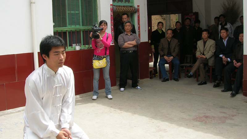 4月18日上午,河南省武术管理中心主任张耀敏,焦作市体育局局长刘新顺,温县人民政府副县长戚太明,温县体育局局长张胜利及各单位有关领导一行二十余人到和式太极拳的发源地调研,并观看了和式太极拳及器械的表演。 下午,在县政府会议室举行了座谈会,听取了温县筹办河南省传统太极拳大赛的筹备情况,并座谈了太极拳发展的有关问题。和式太极拳传人和有禄介绍了赵堡及近几年和式太极拳发展的情况。有关领导勉励和式太极拳要加大宣传力度,加快发展步伐。